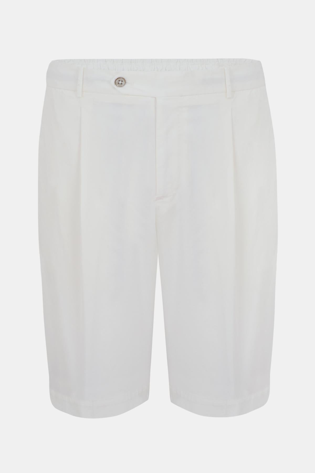 Erkek Beyaz Büzgülü Elastik Bel Bantlı Pilili Bermuda Şort