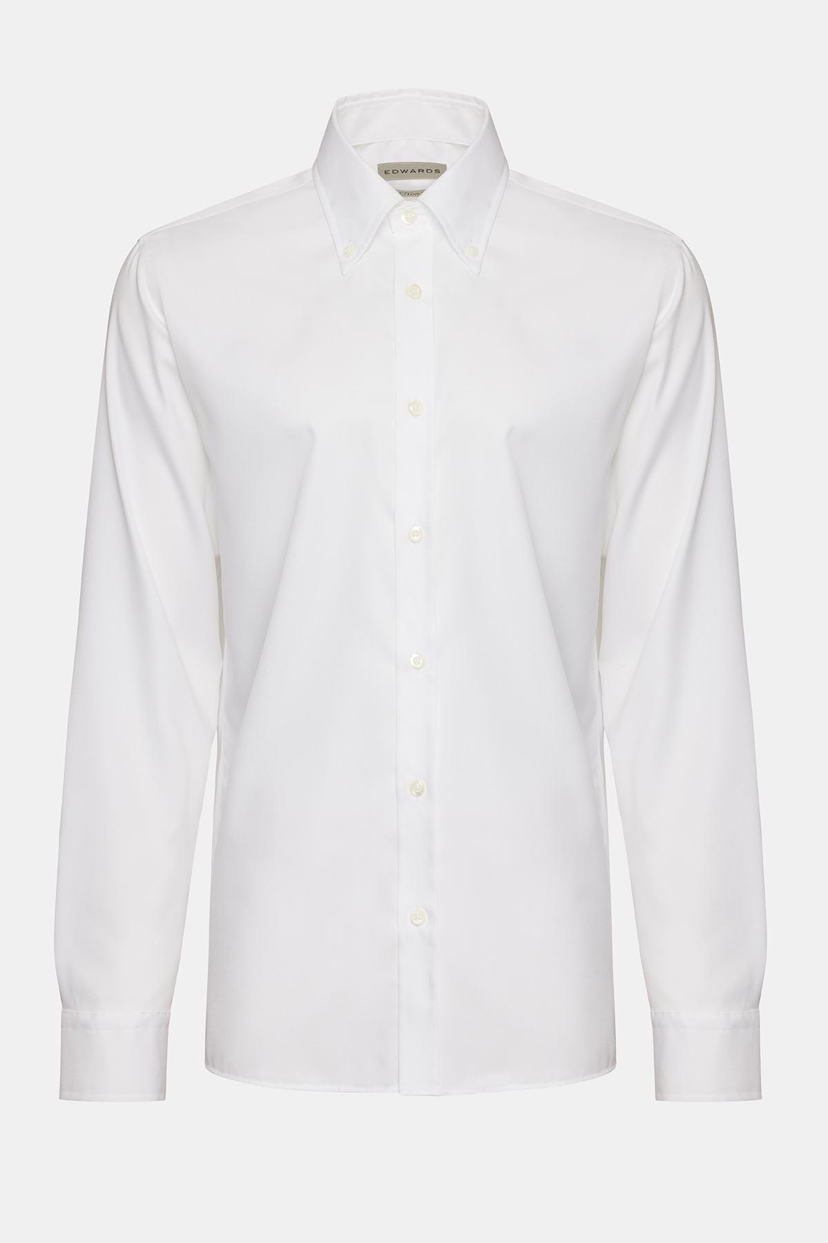 Erkek Beyaz Cooper Fit Düğmeli Yaka Non-Iron Spor Gömlek