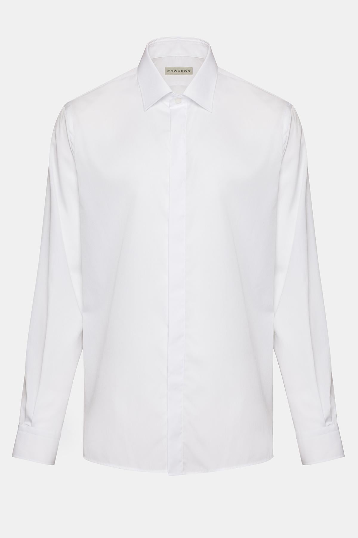 Erkek Beyaz Cooper Fit Kravat Yaka Gizli Patlı Smokin Gömleği