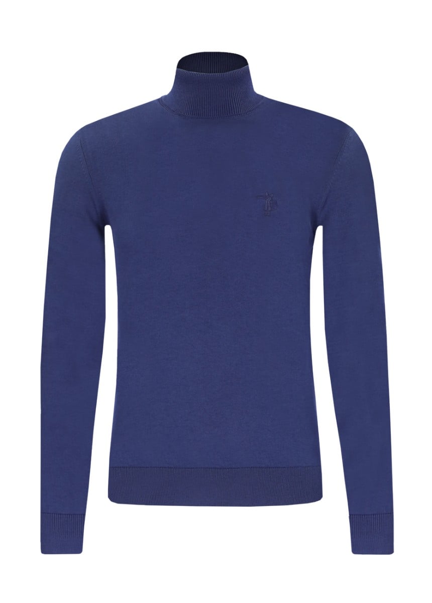 Turtleneck knit sweater.%100 CottonWash this product inside out at 30 degrees with similar colors and dry in the shade. Do not iron the printed or embroidered area, this area can be ironed backwards.