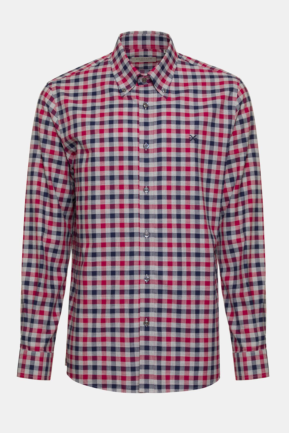 Erkek Bordo Cooper Fit Düğmeli Yaka Ekoseli Spor Gömlek