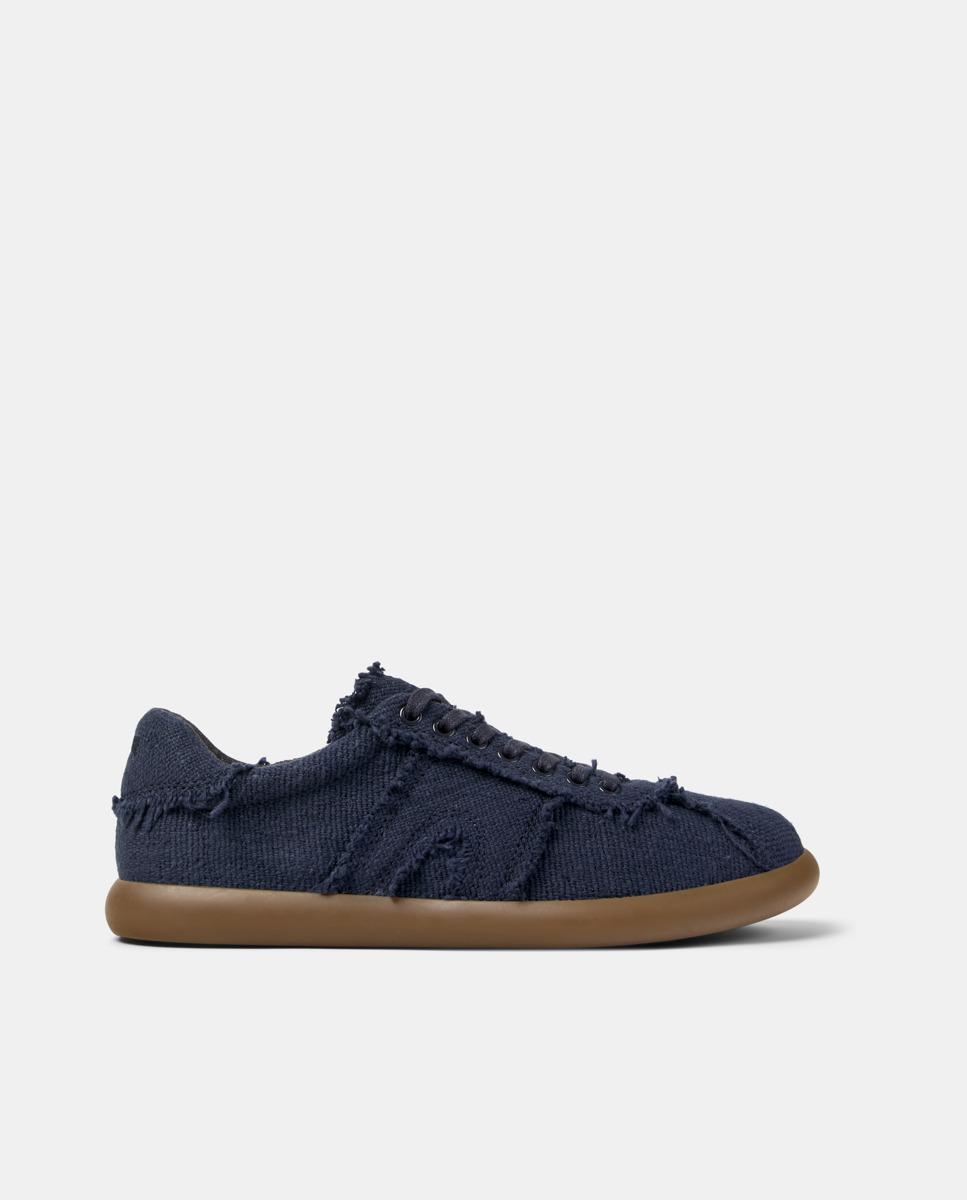 OrthoLite® Recycled™ tabanlık ve kauçuk dış tabanlı mavi doğal boyalı organik pamuklu erkek spor ayakkabısı.