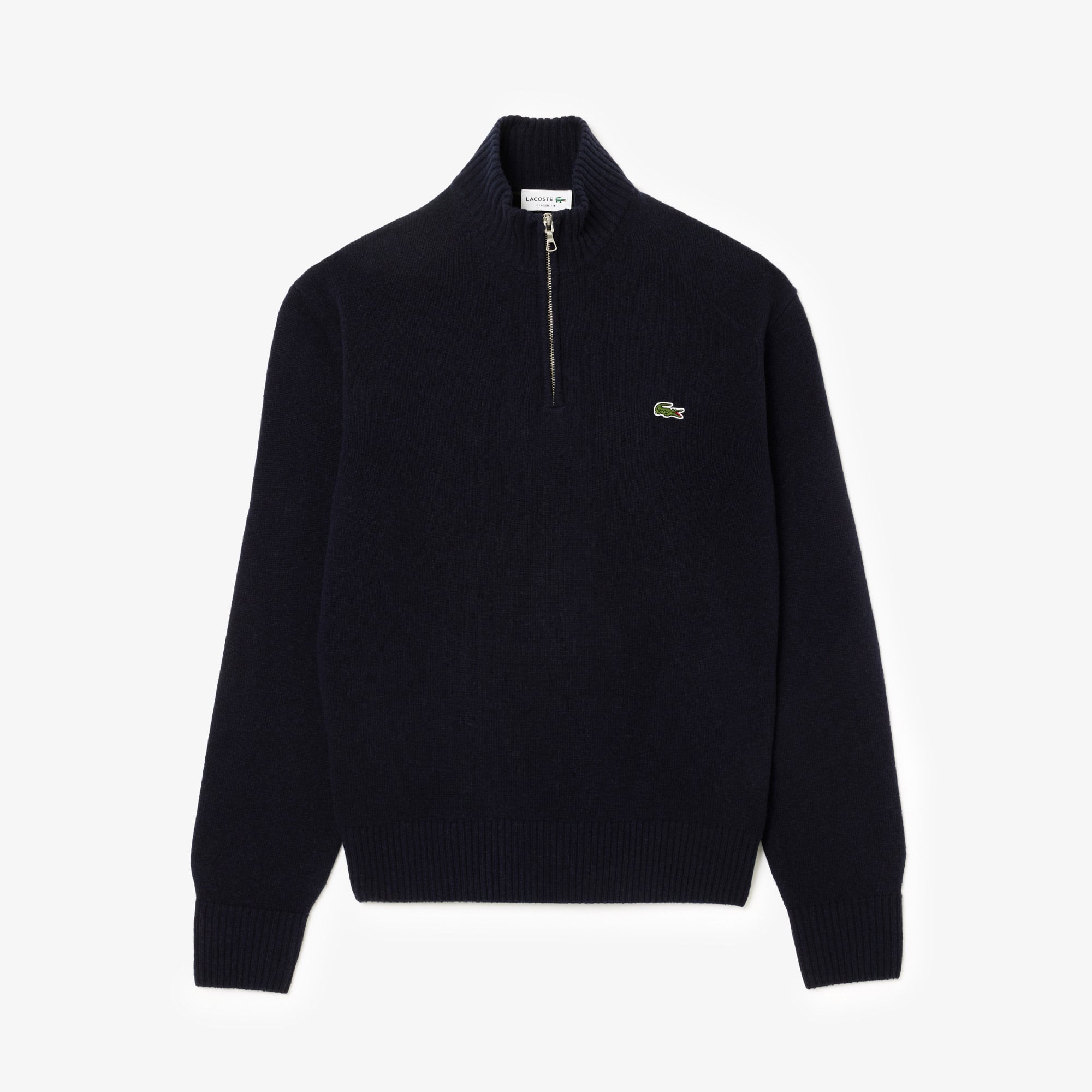 Erkek Classic Fit Yarım Fermuarlı Yün Lacivert Kazak