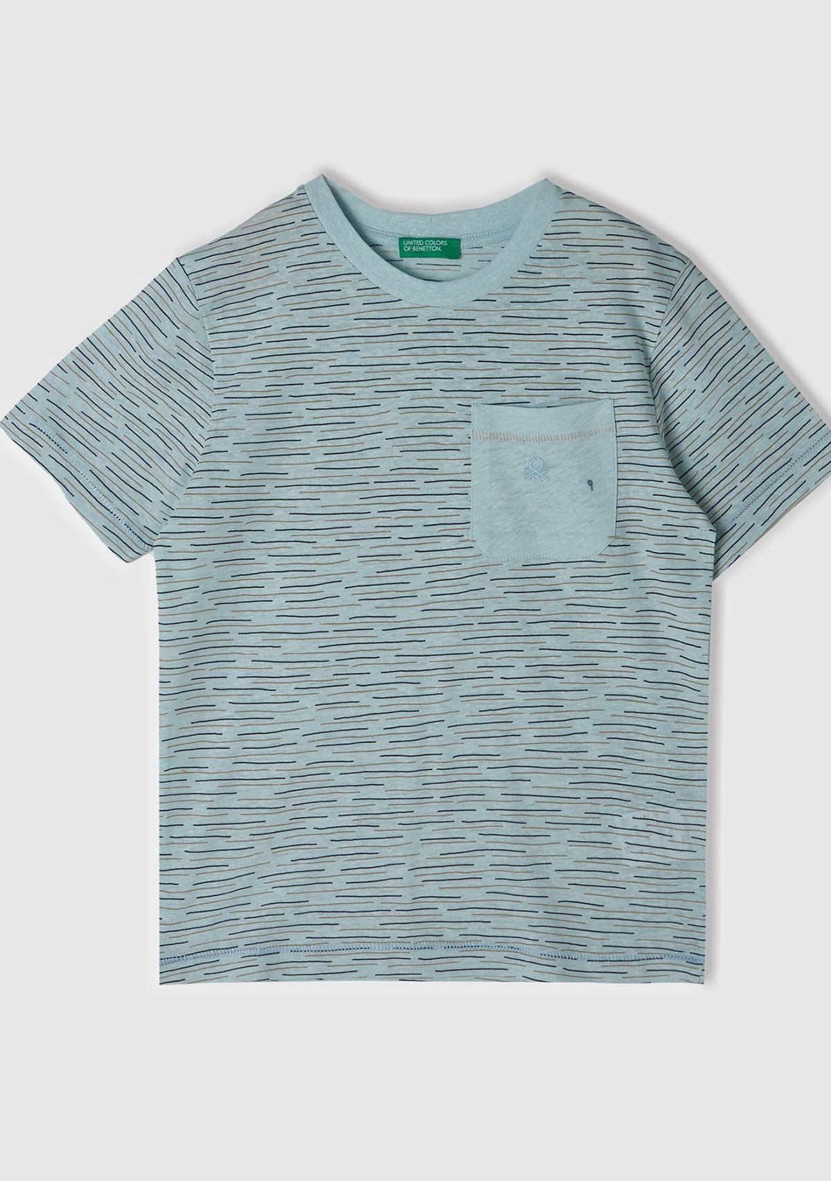 Erkek Çocuk Açık Mavi Logo Baskılı Çizgili Bisiklet Yaka T-Shirt
