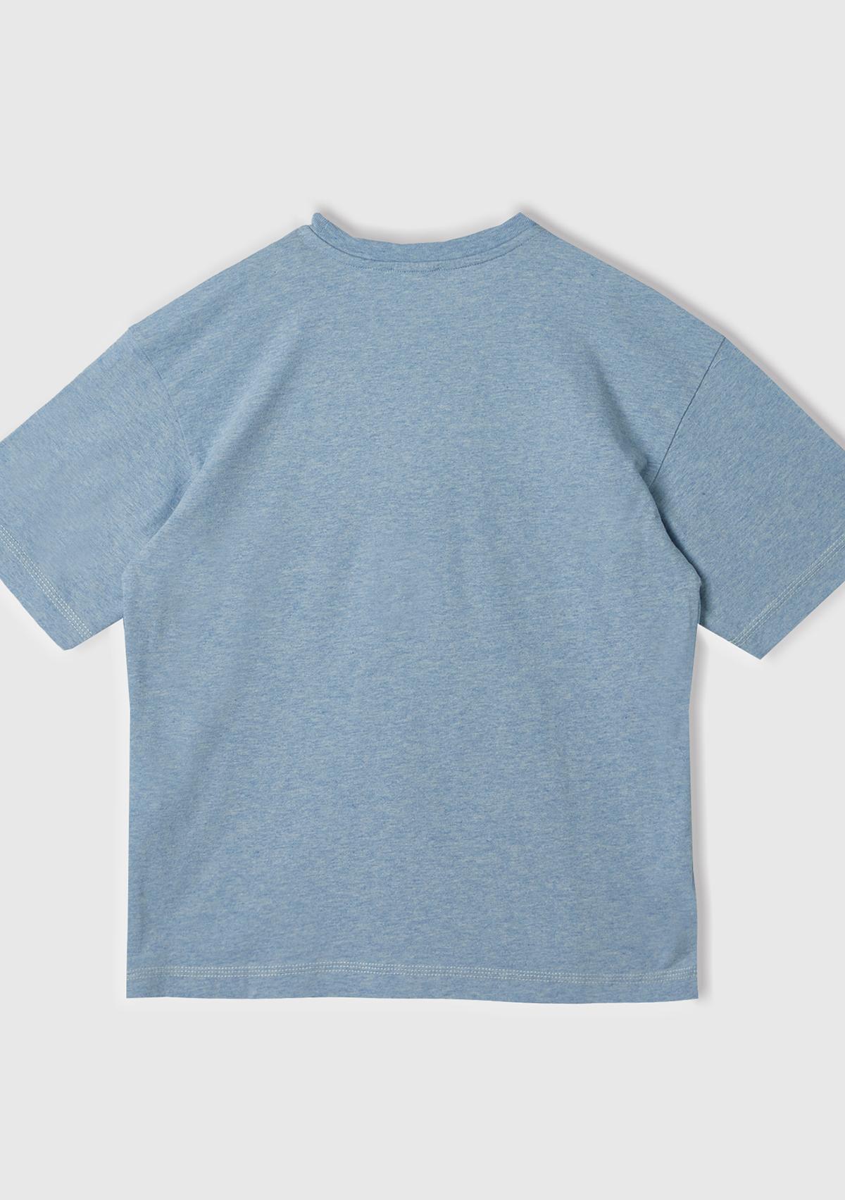 Erkek Çocuk Açık Mavi Önü Kontrast Renkli Aplikeli Bisiklet Yaka Oversize T-Shirt