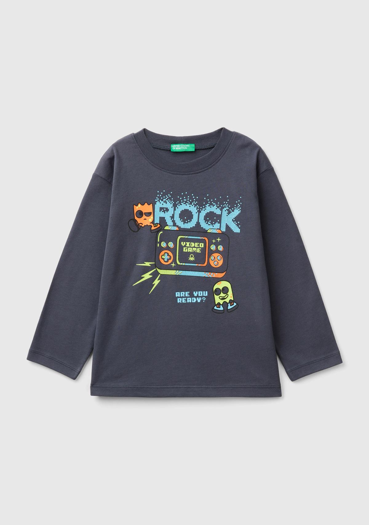 Erkek Çocuk Antrasit Baskılı Bisiklet Yaka Uzun Kollu T-Shirt