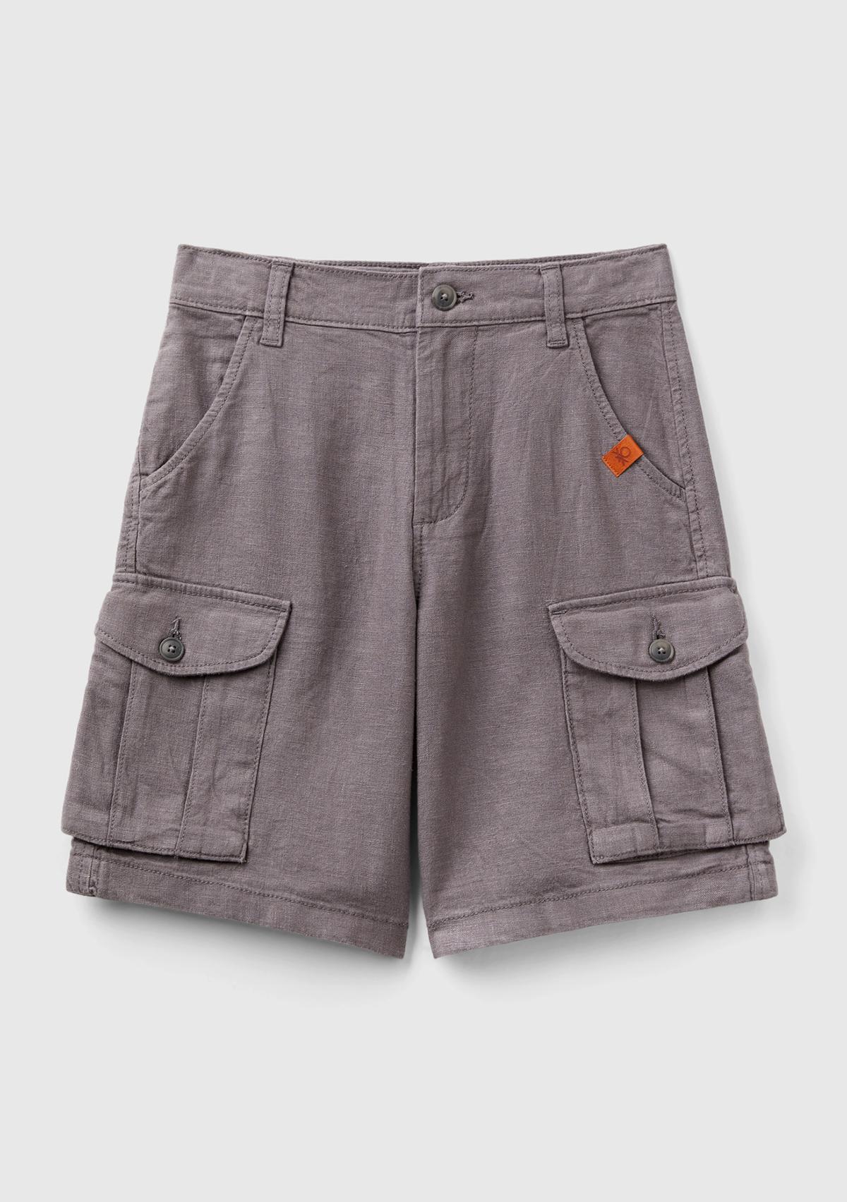 Erkek Çocuk Antrasit Kemer Delikli Cebi Logo Etiketli Yanları Cepli Bermuda Şort