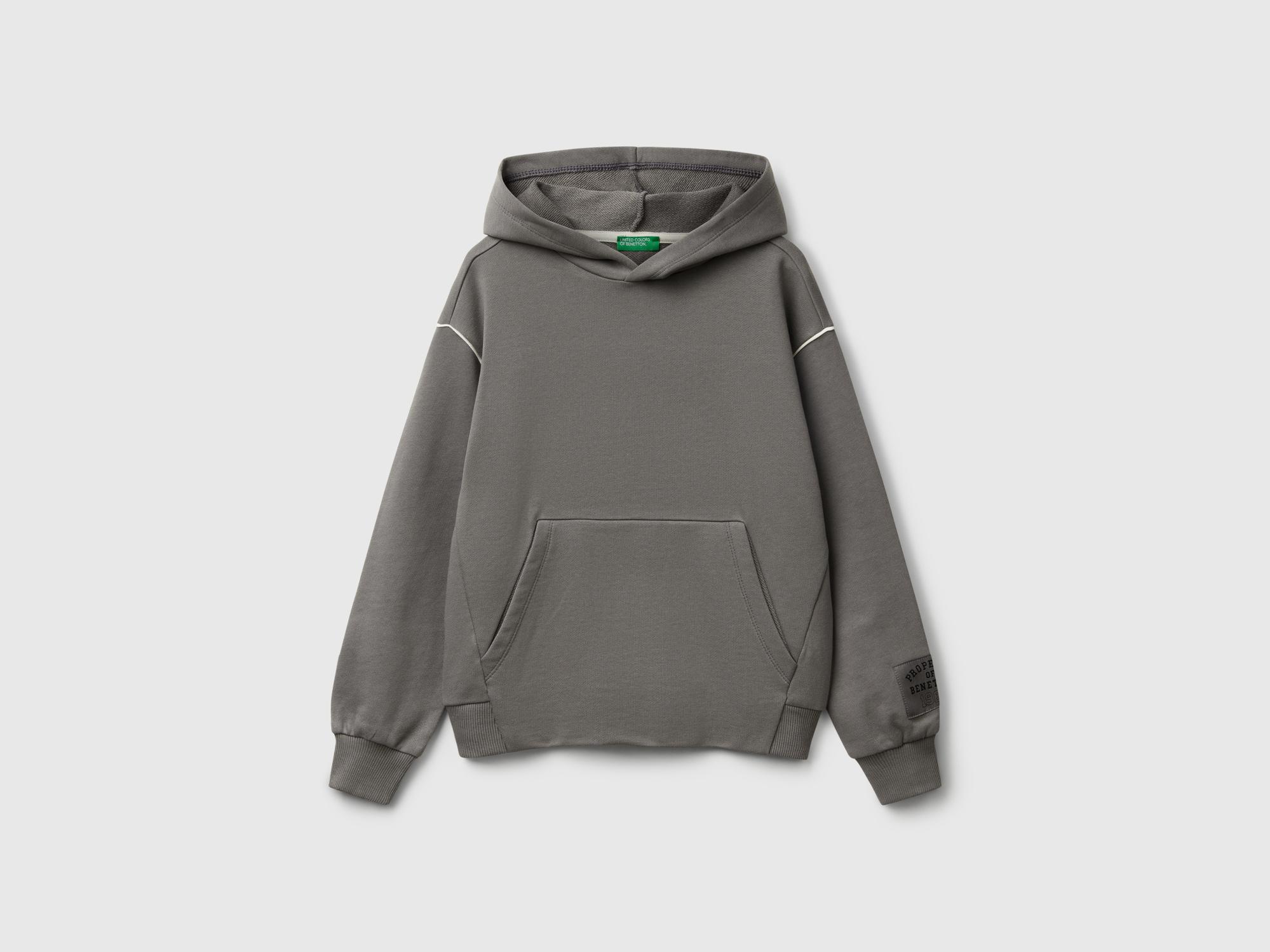 Erkek Çocuk Antrasit Sırtı Şerit Detaylı Logolu Kese Cepli Kapüşonlu Sweatshirt