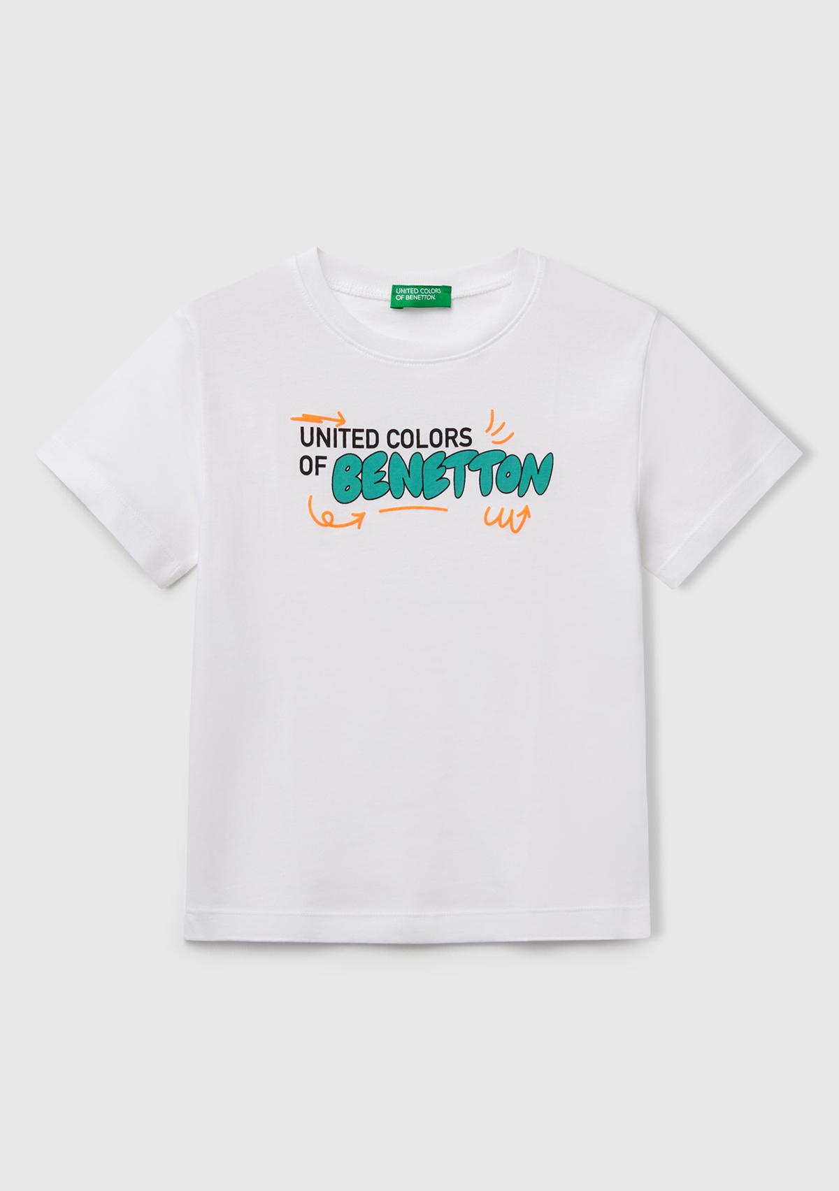Erkek Çocuk Beyaz Benetton Logo Baskılı T-Shirt