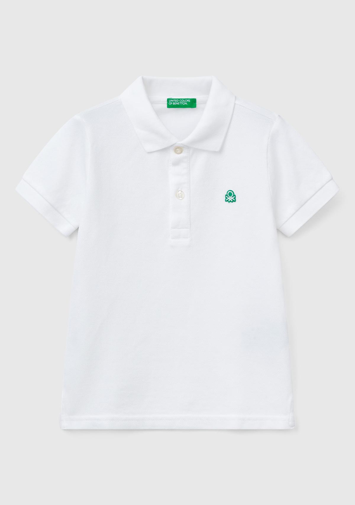 Erkek Çocuk Beyaz Logolu Pike Polo T-Shirt