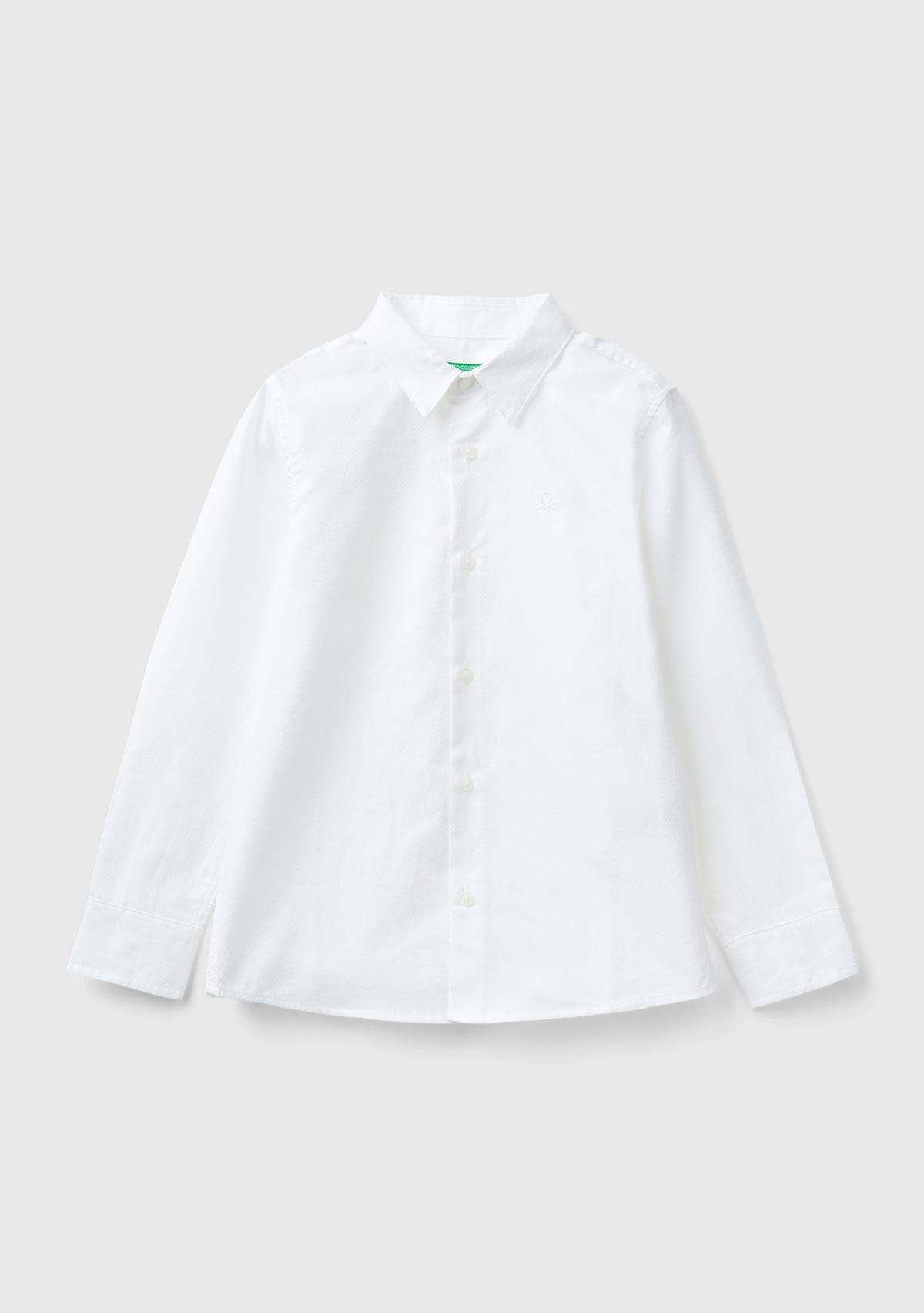 Erkek Çocuk Beyaz Önü Logo İşlemeli Düğmeli Armürlü Gömlek