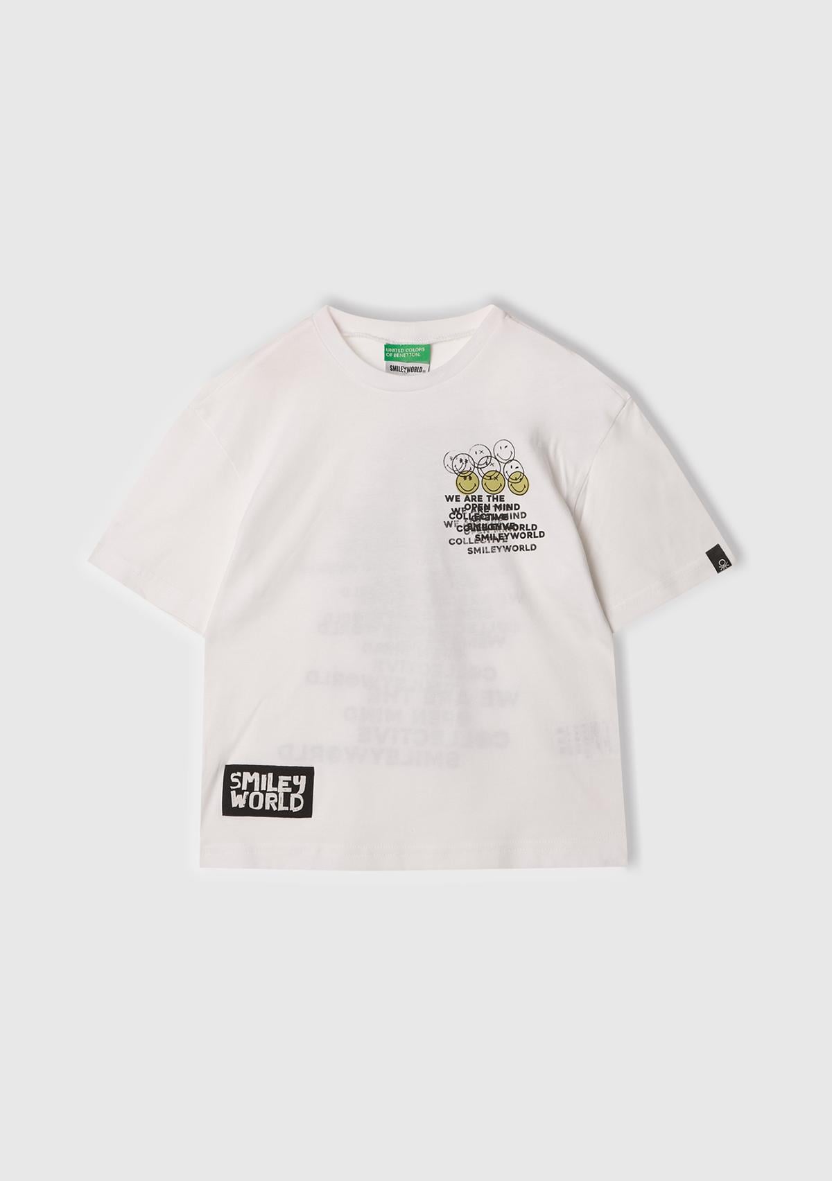 Erkek Çocuk Beyaz Smiley World Baskılı Logo Etiketli T-Shirt