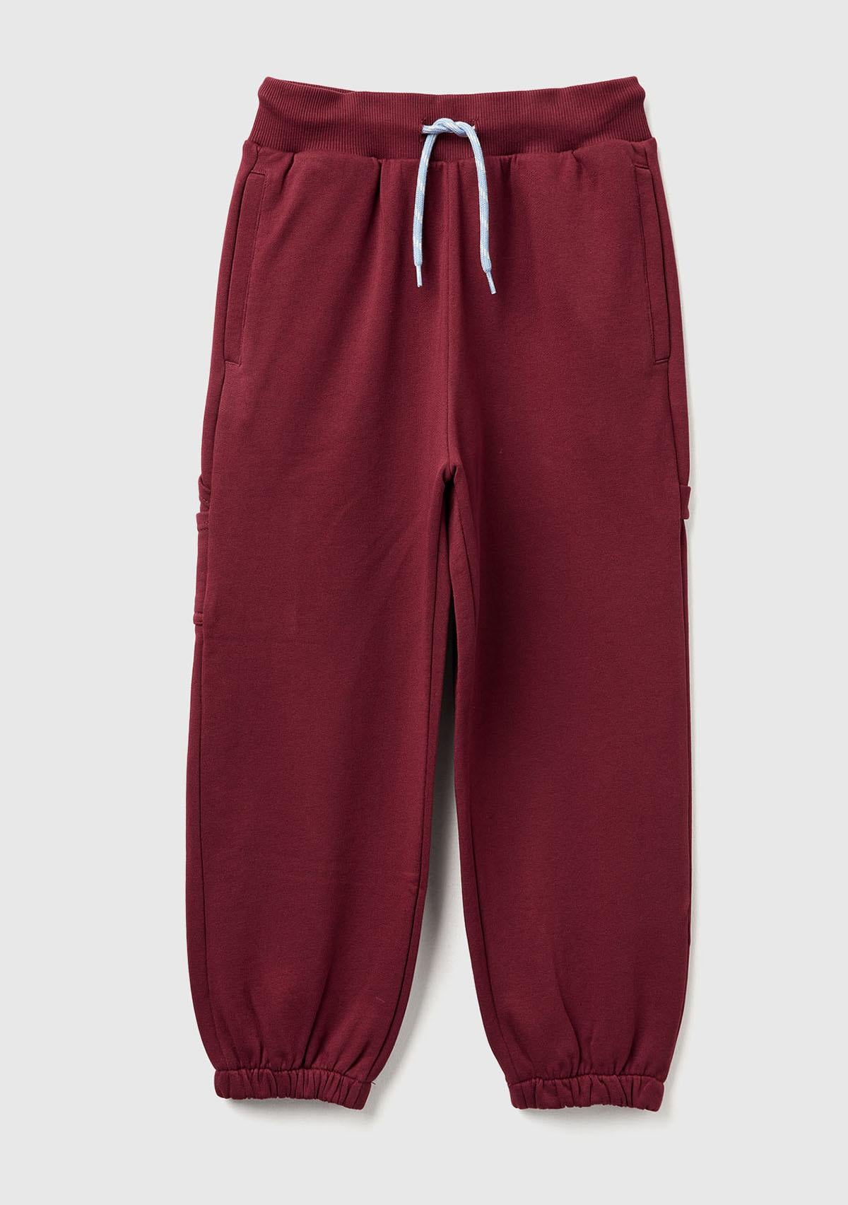 Erkek Çocuk Bordo Cep Detaylı Bileği Büzgülü İpli Eşofman Altı