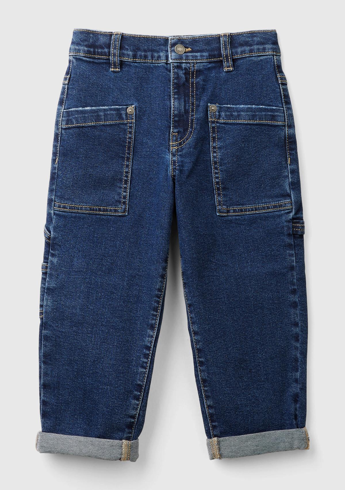 Erkek Çocuk Denim Cep Detaylı Logolu Kıvrık Paça Denim Pantolon