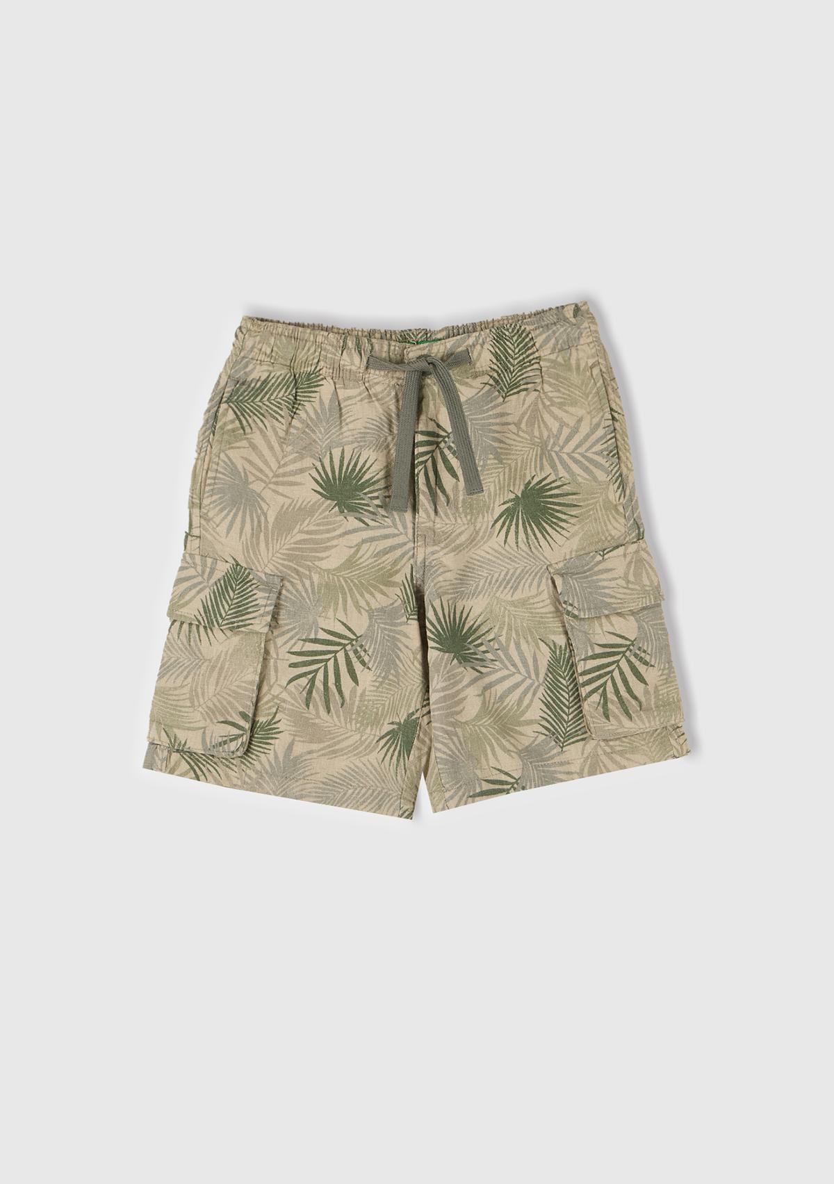 Erkek Çocuk Desenli Tamamı Desenli Büzgü İpli Kapak Cep Detaylı Bermuda Şort