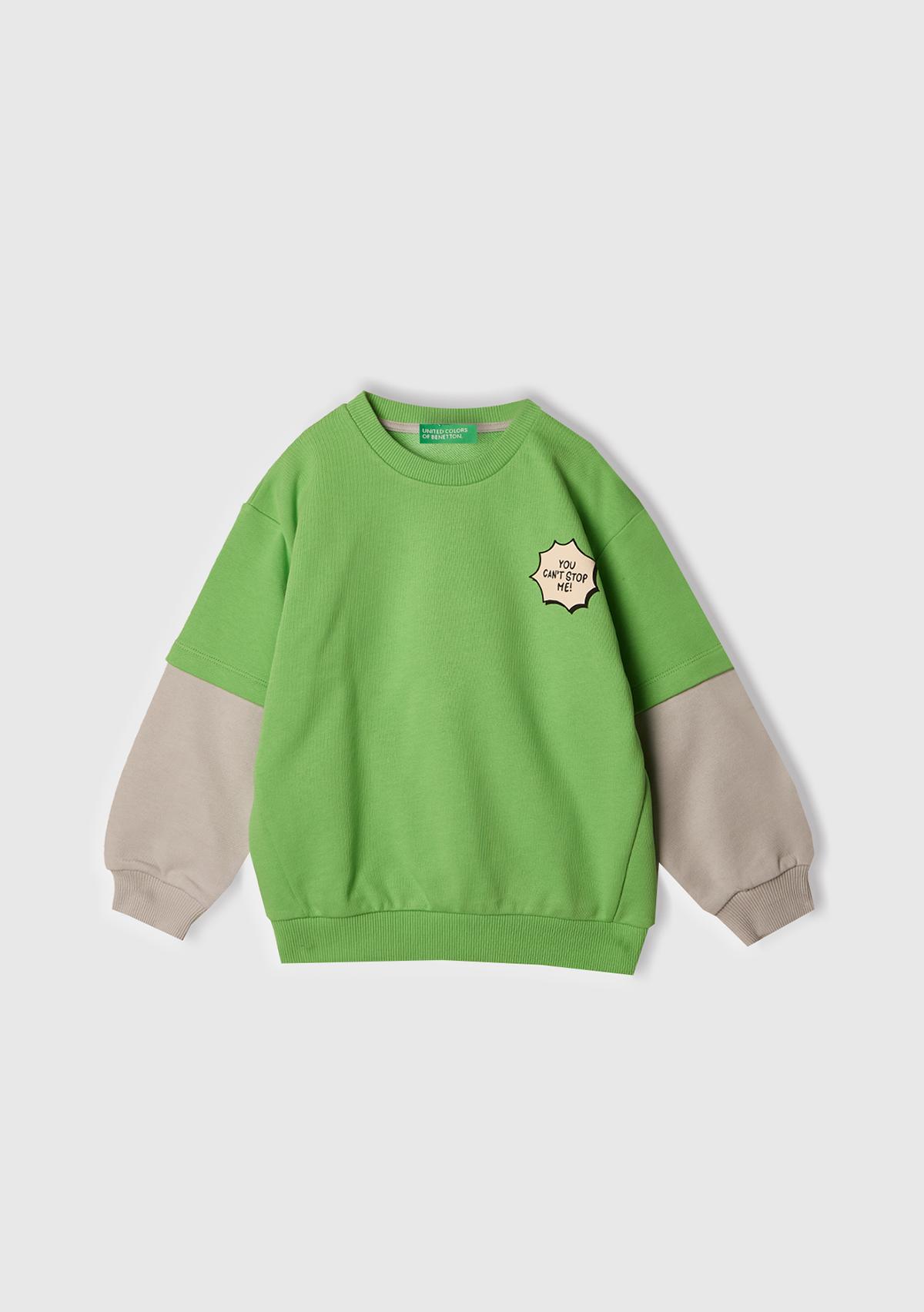 Erkek Çocuk Fıstık Yeşili Grafik Baskılı Çift Kollu Bisiklet Yaka Sweatshirt