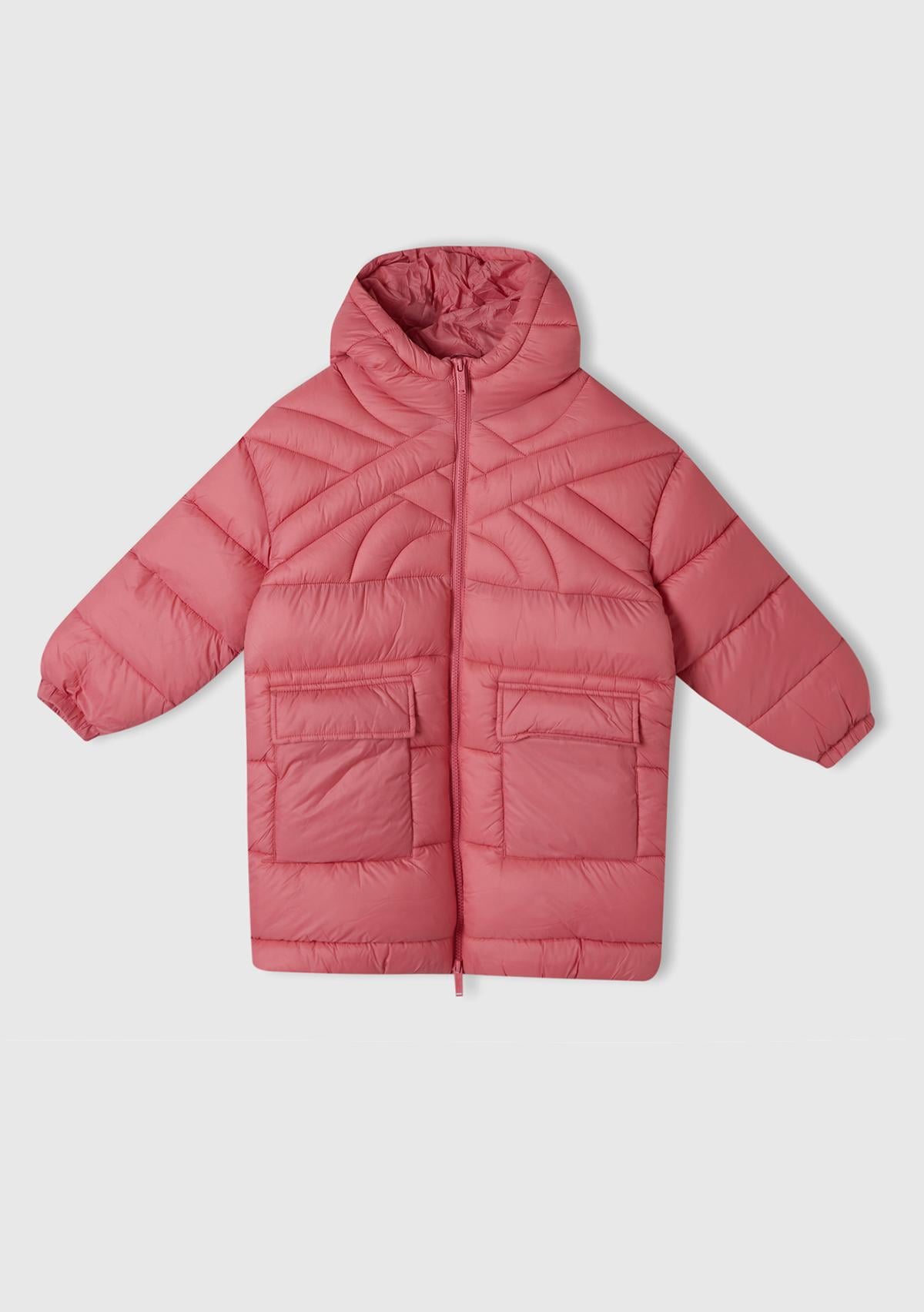 Erkek Çocuk Fuşya Benetton Logo İşlemeli Uzun Mont
