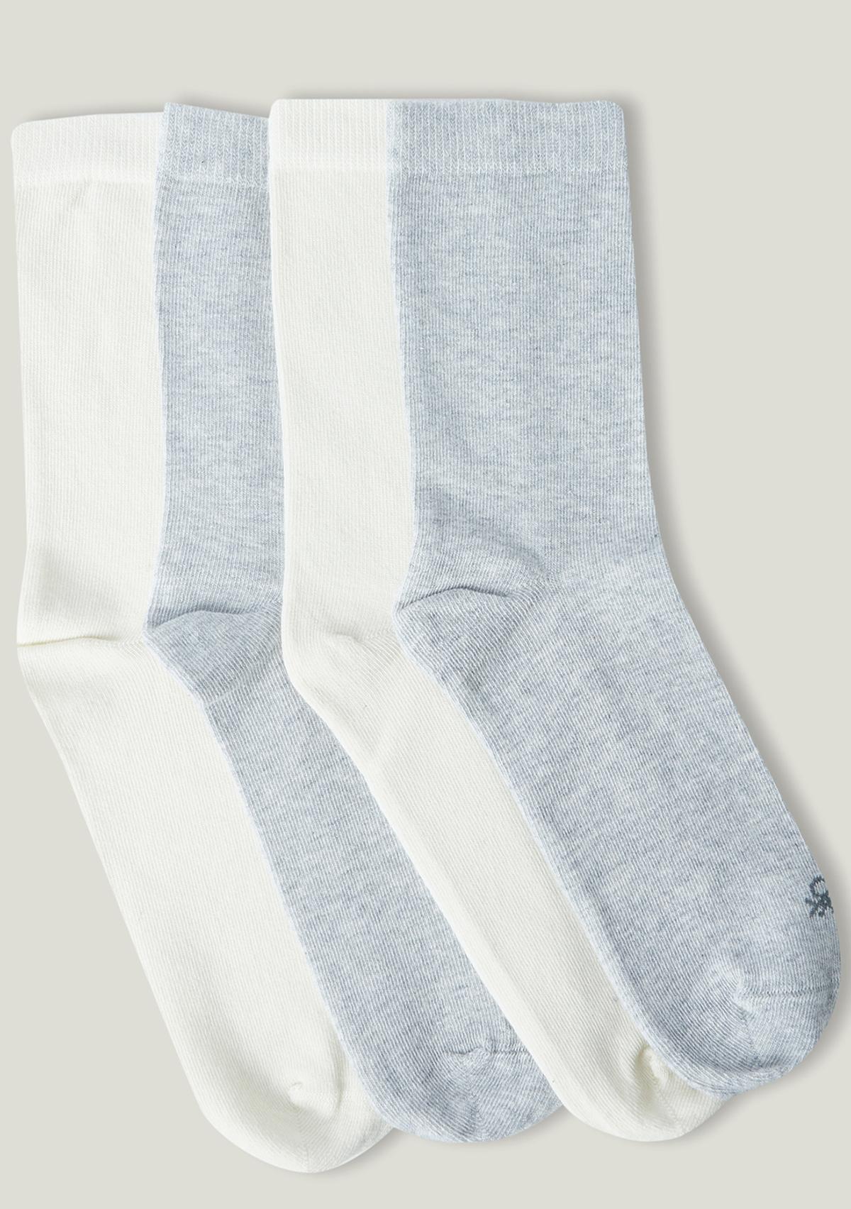 Erkek Çocuk Gri-Beyaz 4lü Benetton Logolu Düz Soket Çorap