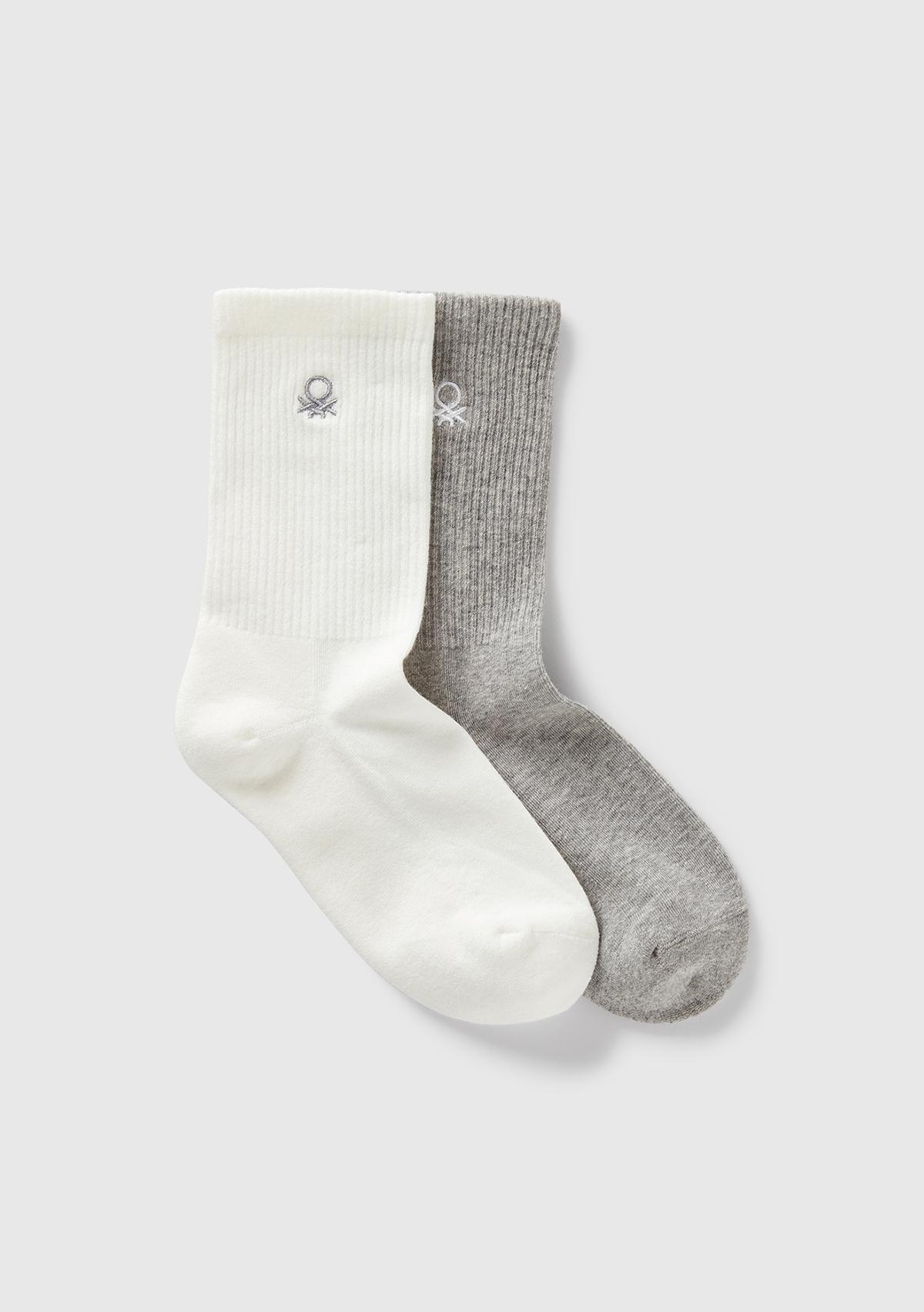 Erkek Çocuk Gri-Beyaz Logo İşlemeli 2'li Uzun Soket Çorap Seti