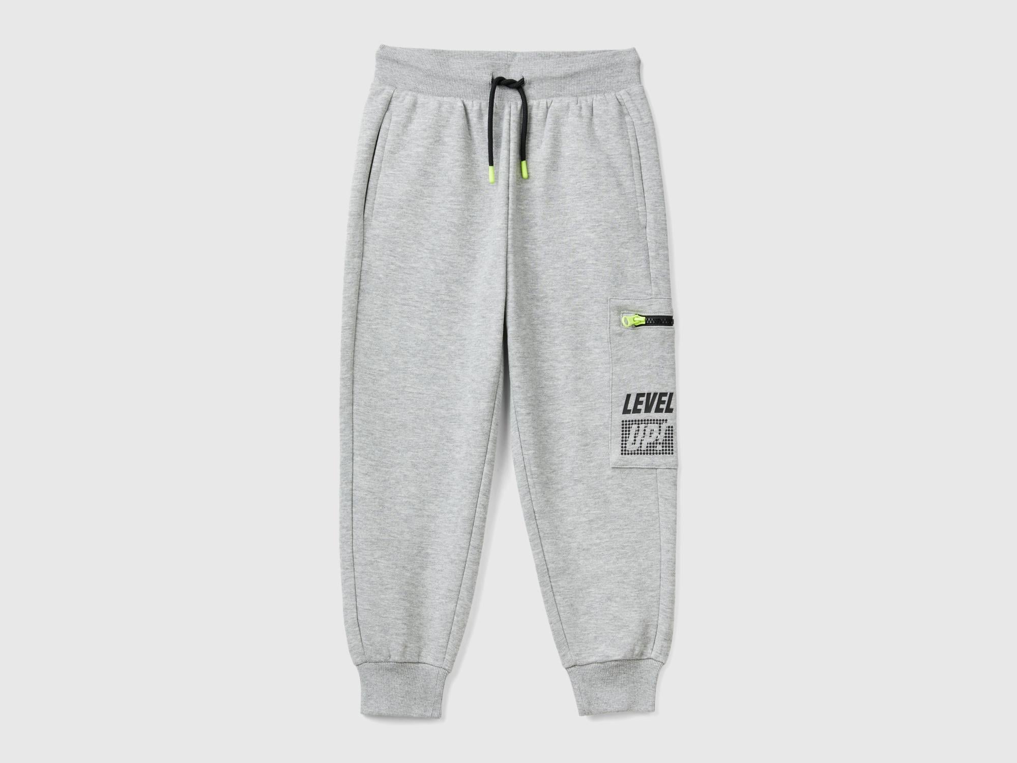 Erkek Çocuk Gri Melanj 3 Boyutlu Baskılı Sol Yanı Cepli Beli Lastikli Eşofman Altı