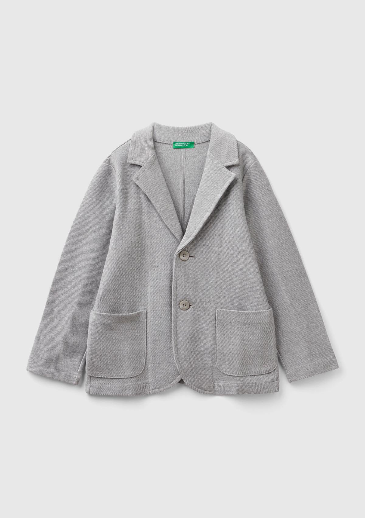 Erkek Çocuk Gri Melanj Düğme Kapamalı Yama Cepli Regular Ceket