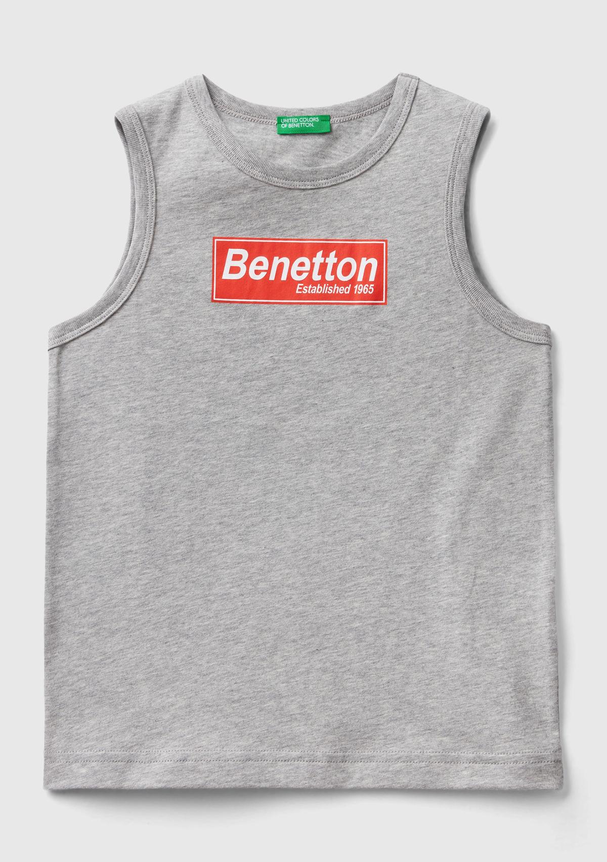 Erkek Çocuk Gri Melanj Logo Baskılı Kolsuz Atlet