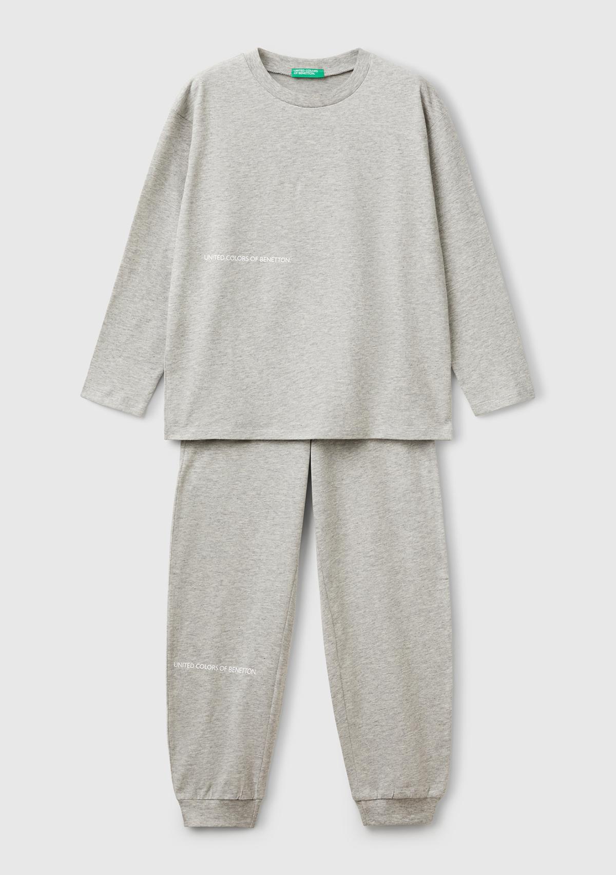 Erkek Çocuk Gri Melanj Logo Şeritli T-Shirt - Jogger Takım