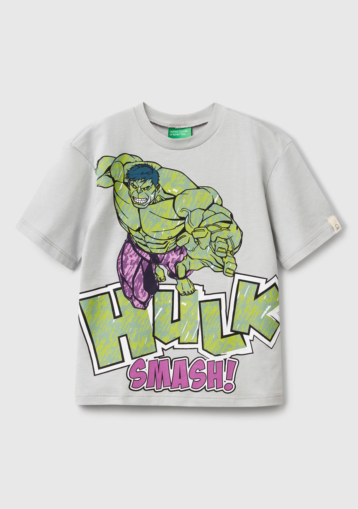 Erkek Çocuk Gri Melanj Marvel Kahraman Baskılı Logo Etiketli T-Shirt
