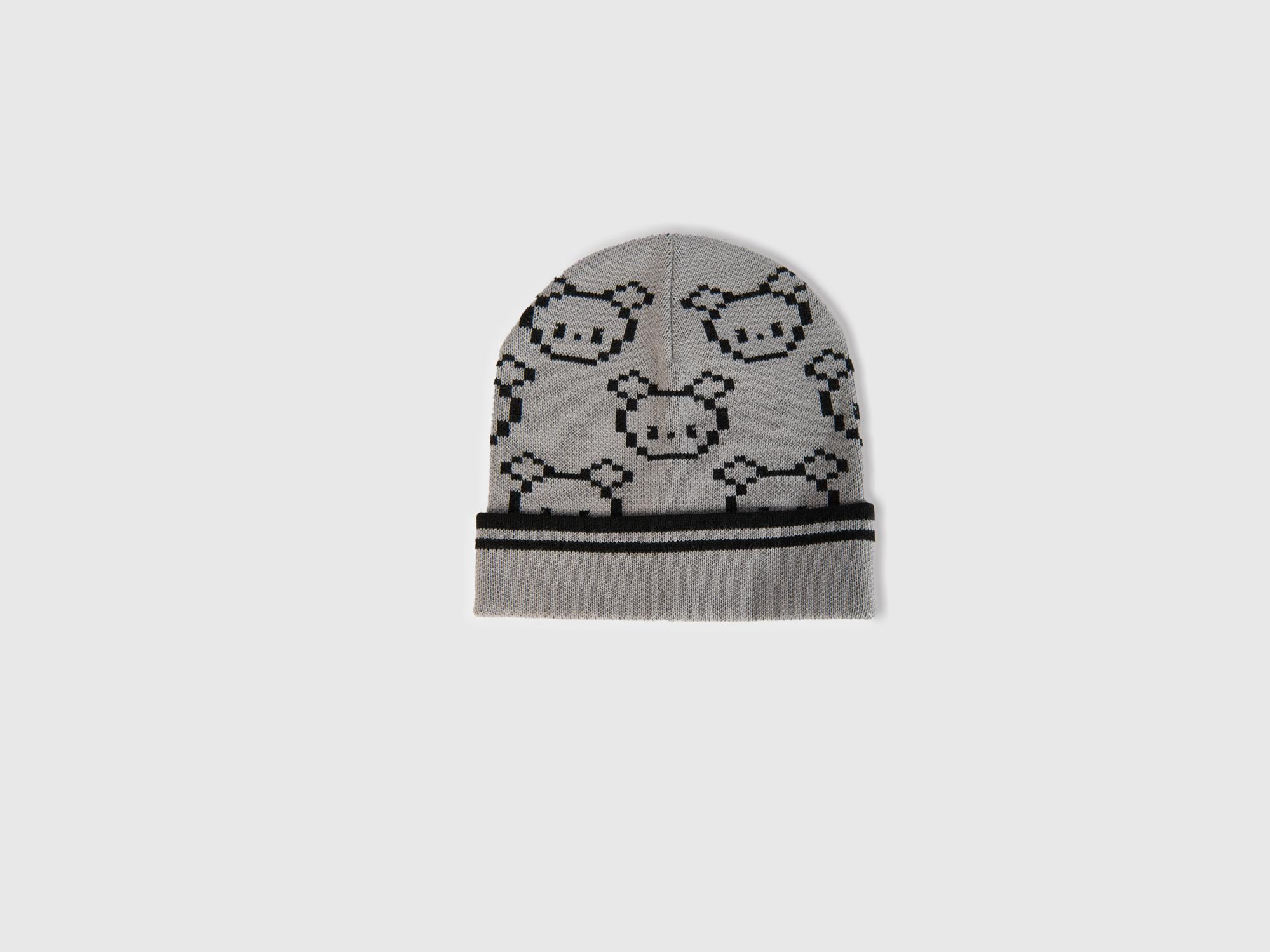 Erkek Çocuk Gri Melanj Şerit Detaylı Hayvan Desenli Bere