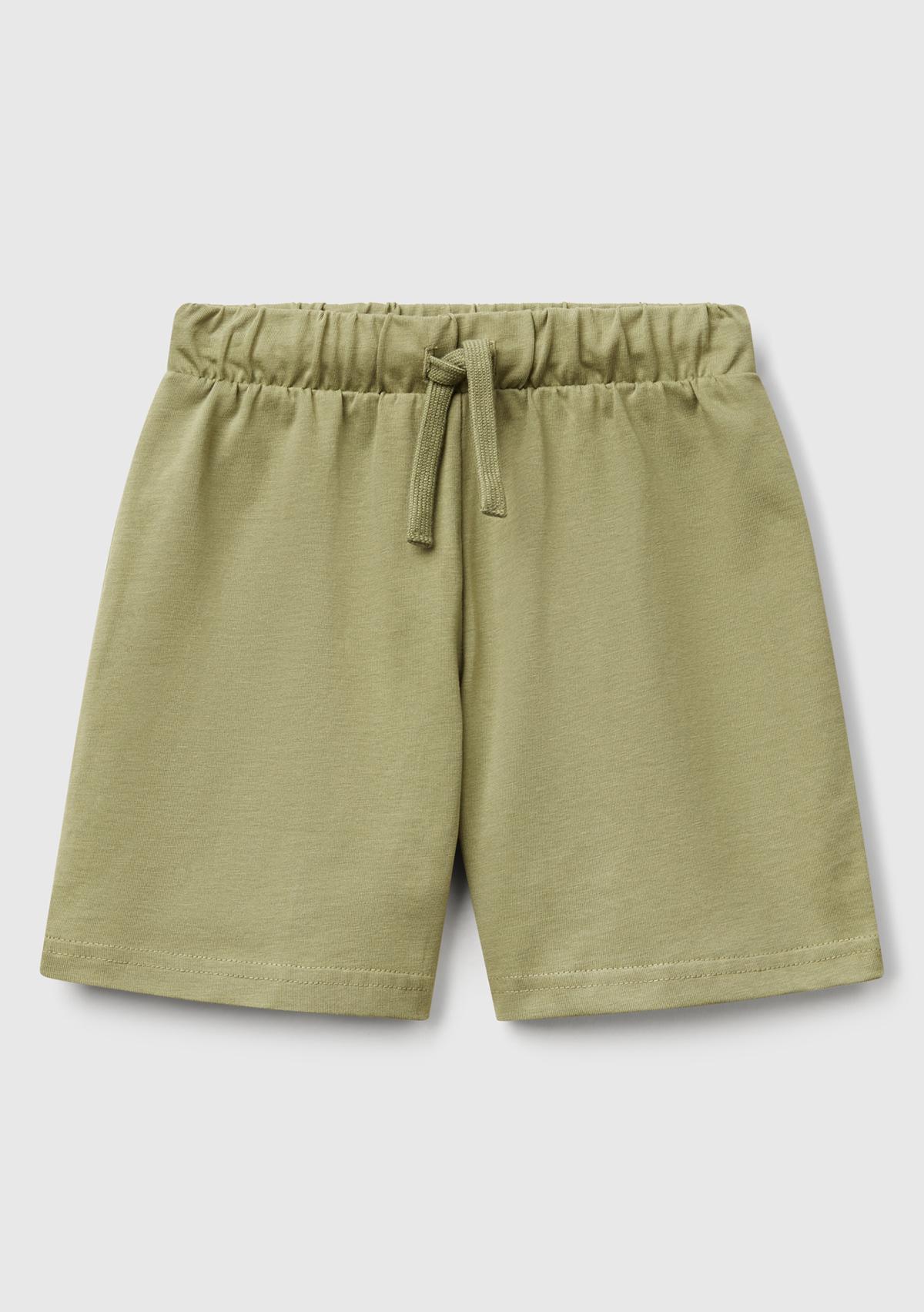Erkek Çocuk Haki Benetton Logolu Bermuda Penye Şort