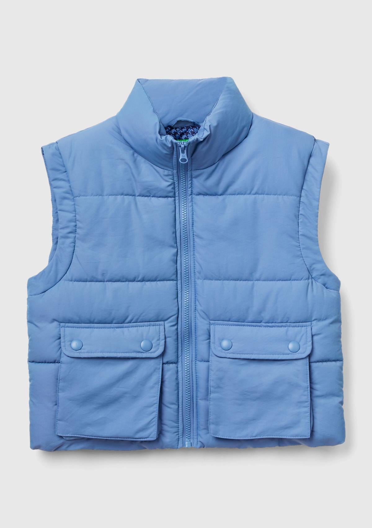 Erkek Çocuk Havacı Mavi Ceplerinde Düğme Detaylı Pufa Yelek