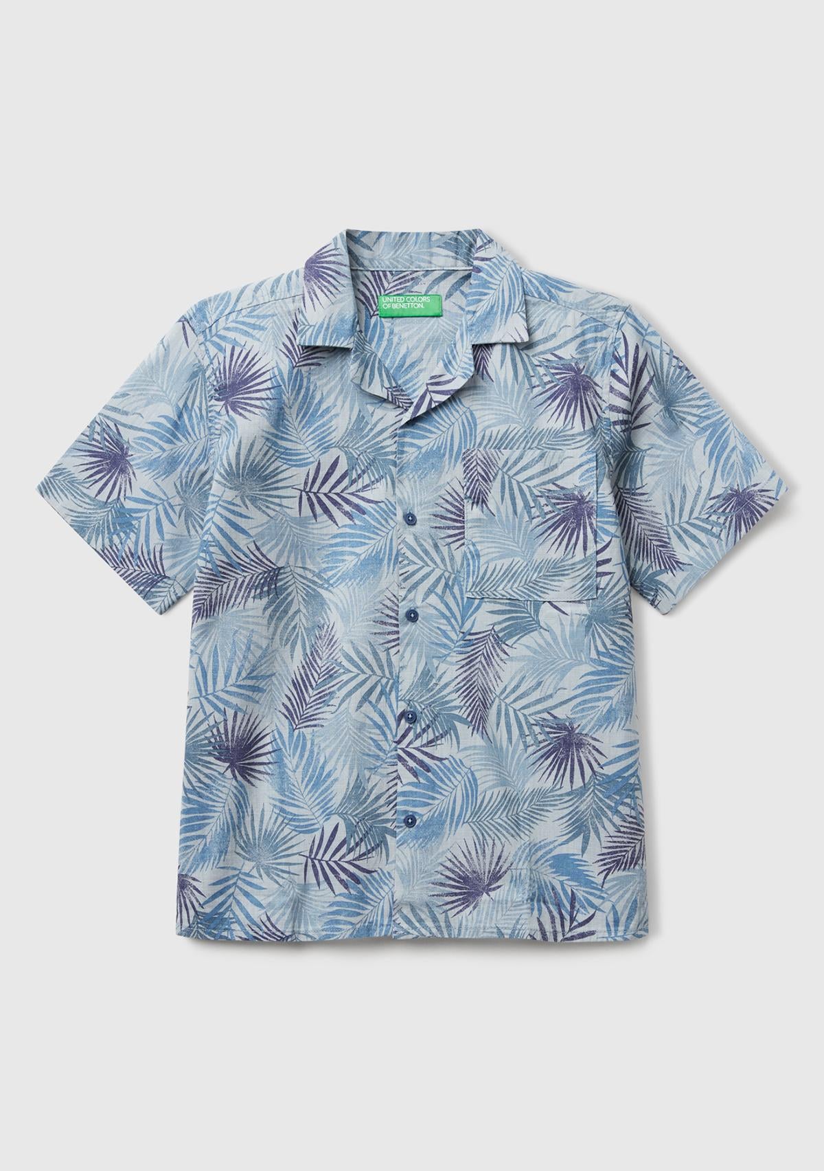 "name": "Erkek Çocuk Havacı Mavi Keten Karışımlı Tamamı Desenli Tek Cep Detaylı Kısa Kollu Gömlek",