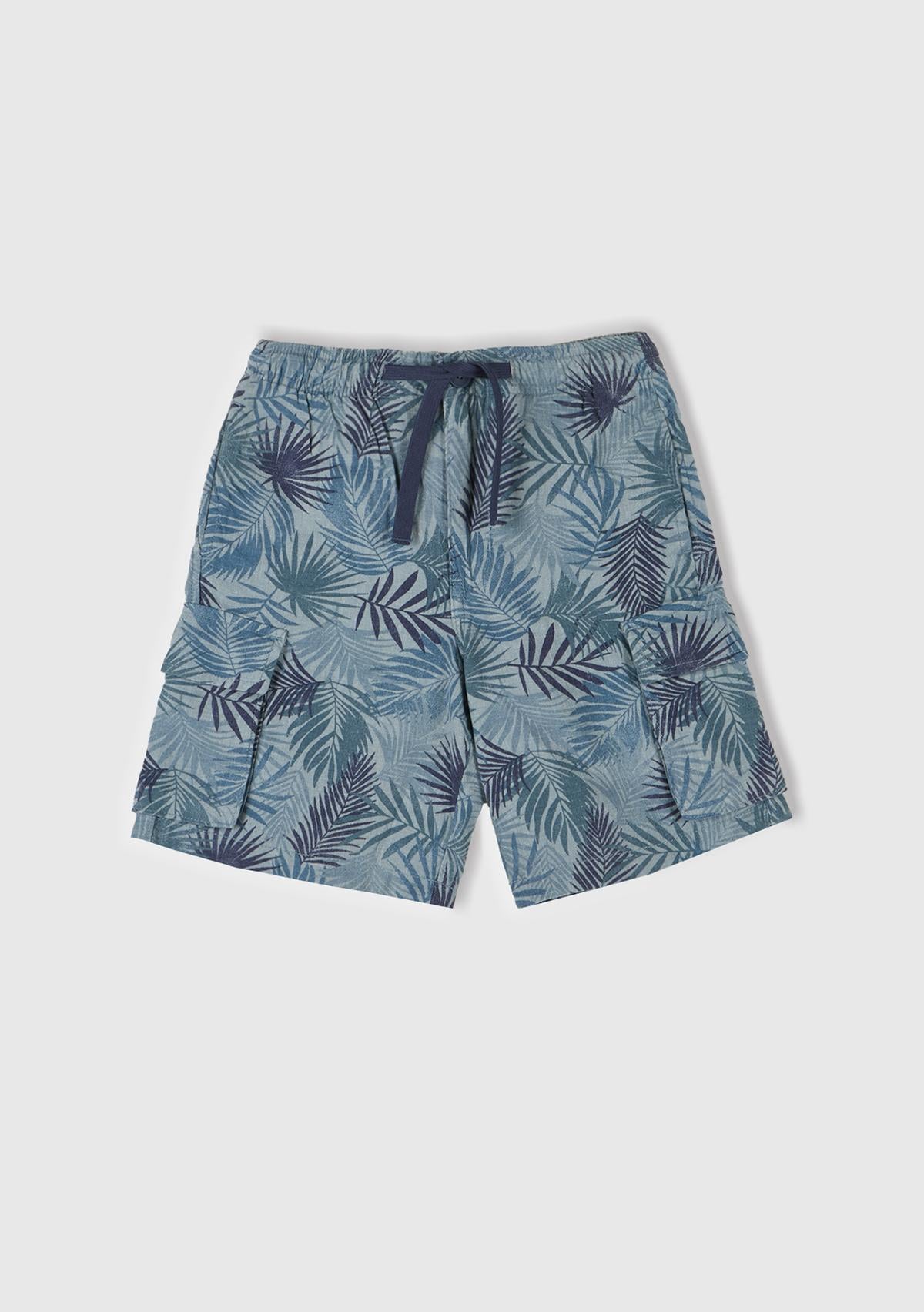 Erkek Çocuk Havacı Mavi Tamamı Desenli Büzgü İpli Kapak Cep Detaylı Bermuda Şort