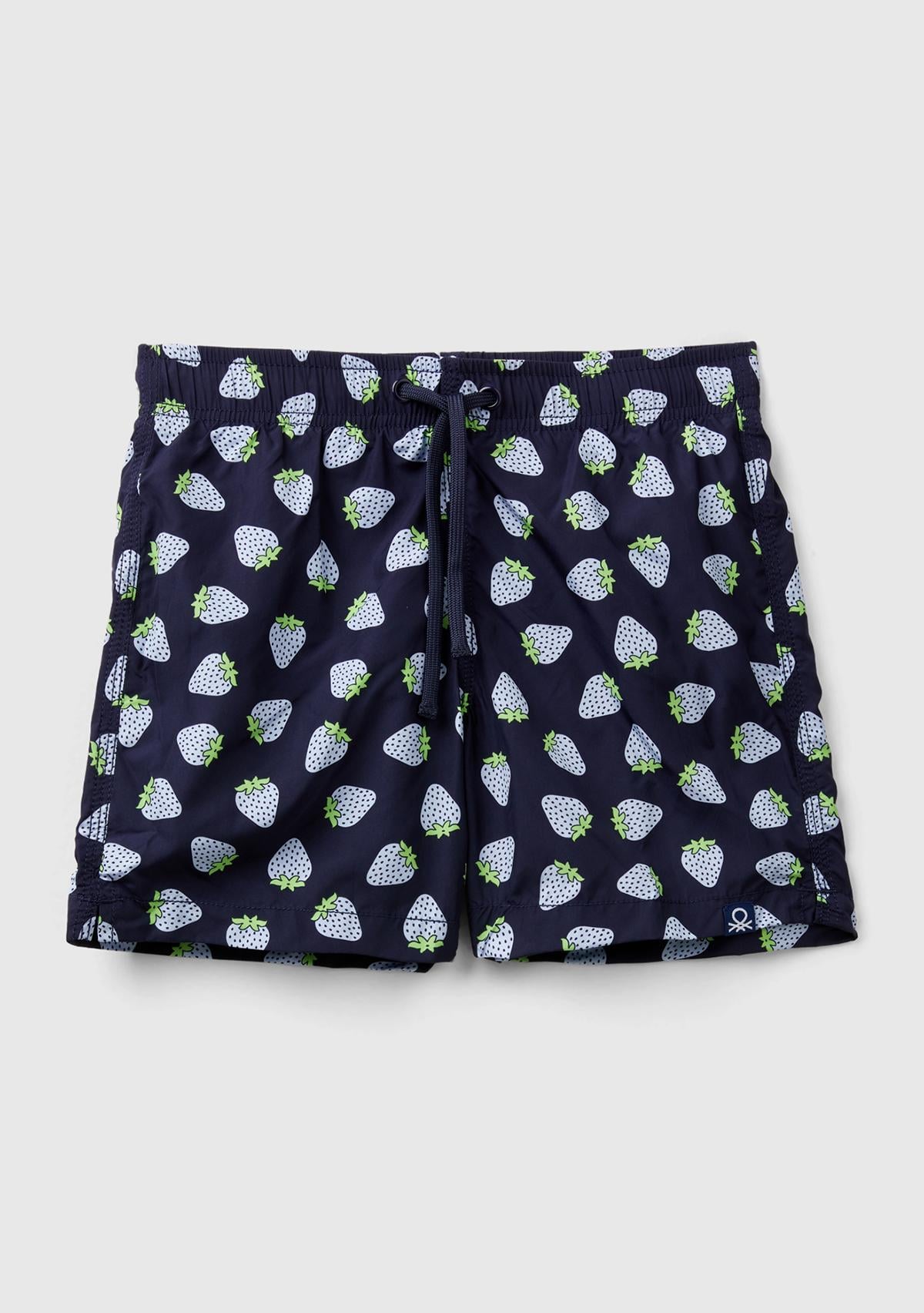 Erkek Çocuk İndigo Tamamı Desenli Cep Detaylı Beli Büzgülü Kısa Deniz Şortu