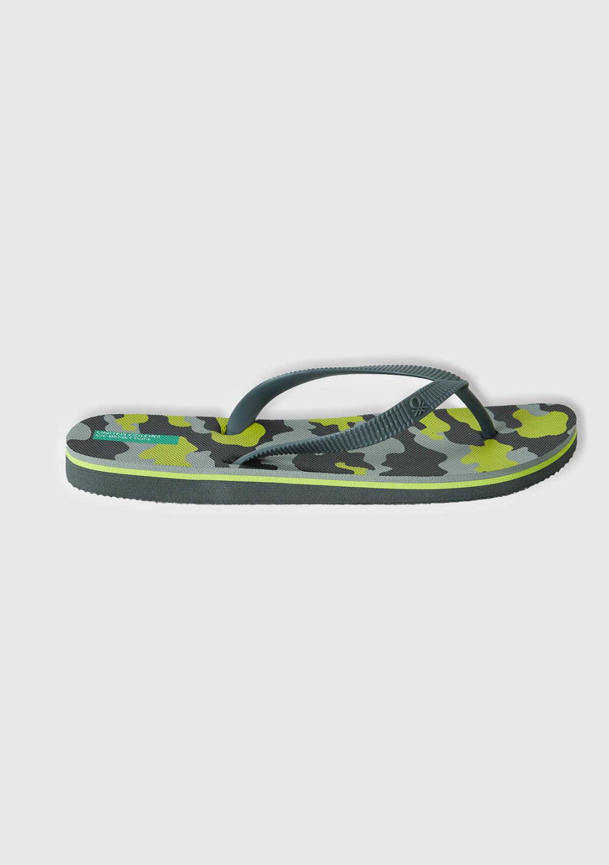 Erkek Çocuk Kamuflaj Üstü Logo Baskılı Tamamı Desenli Parmak Arası Terlik