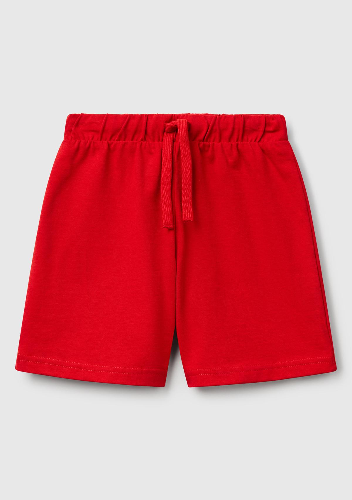 Erkek Çocuk Kırmızı Benetton Logolu Bermuda Penye Şort