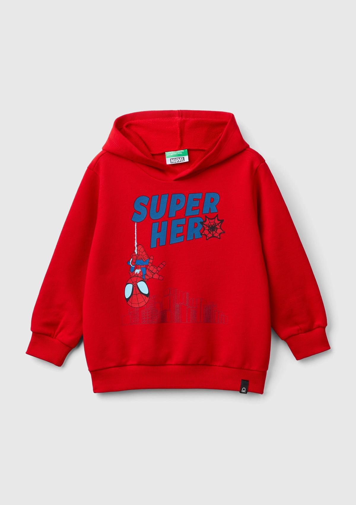 Erkek Çocuk Kırmızı Etek Ucu Logolu Önü ve Arkası Spiderman Baskılı Sweatshirt