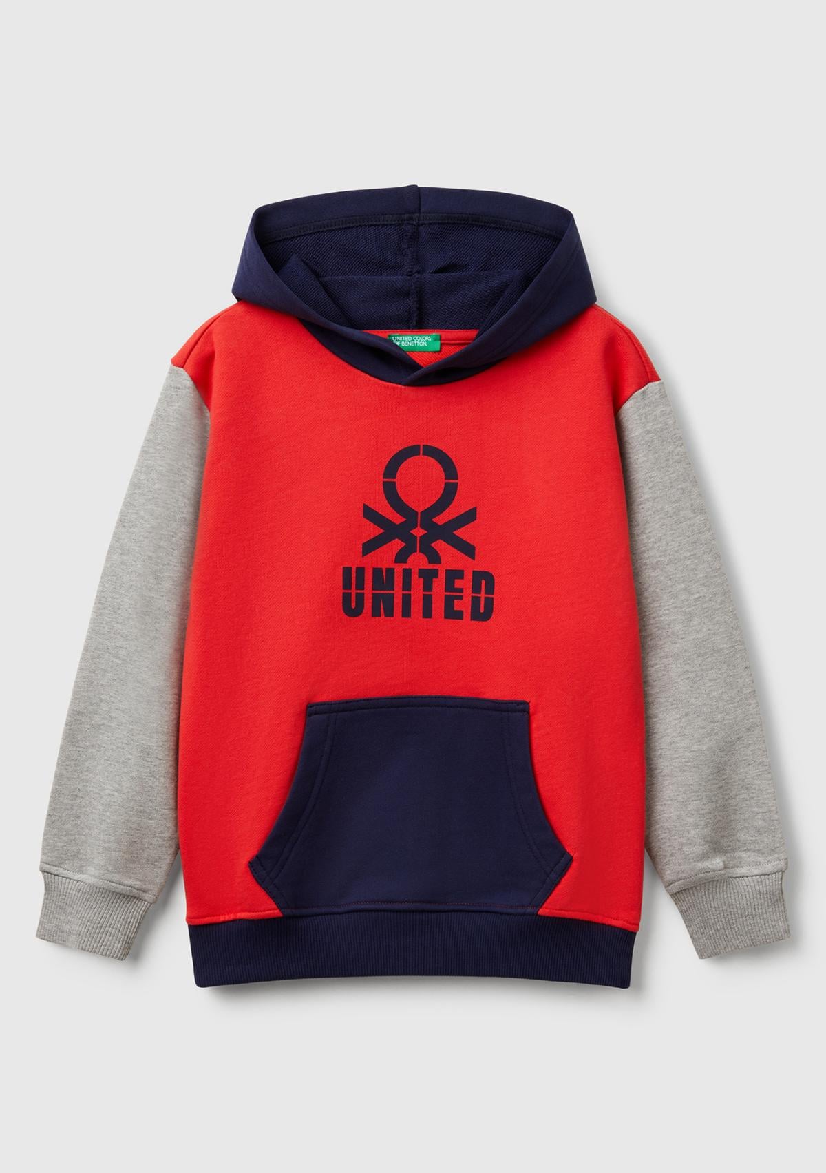 Erkek Çocuk Kırmızı Mix Benetton Logolu Kanguru Cepli Kapüşonlu Sweatshirt