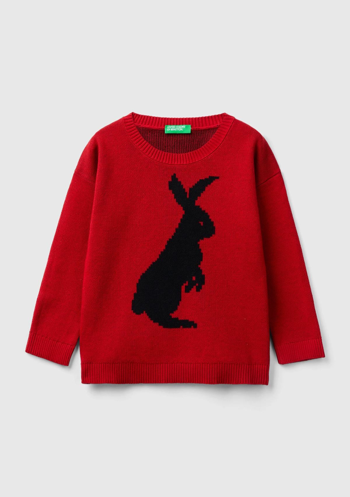 Erkek Çocuk Kırmızı Tavşan Desenli Kazak
