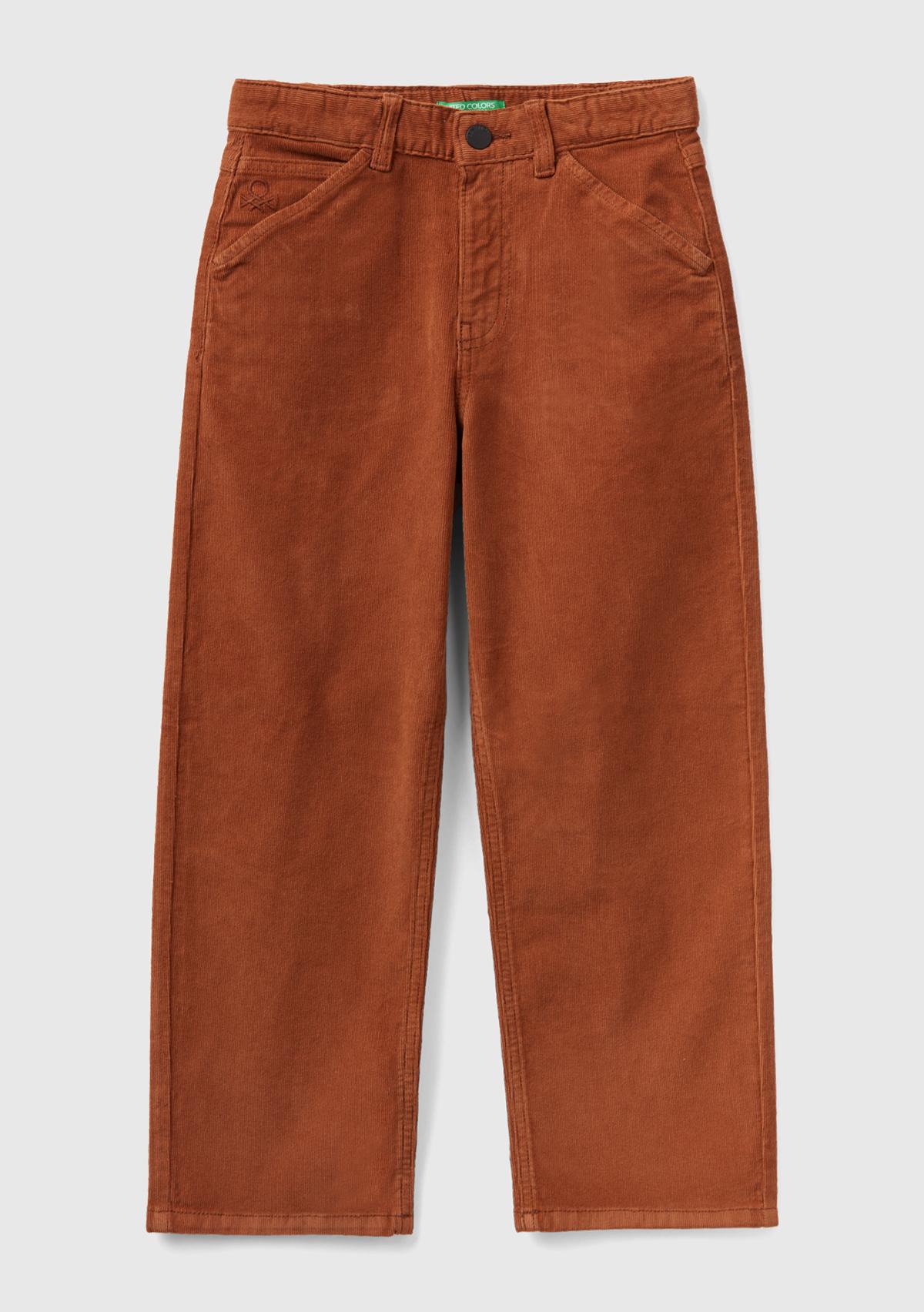 Erkek Çocuk Koyu Bej İnce Fitilli Kadife Pantolon