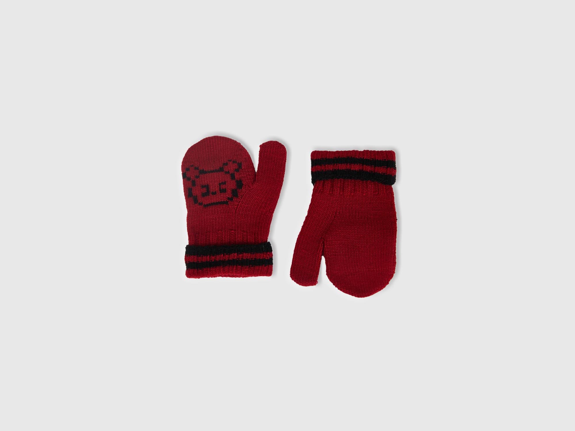 Erkek Çocuk Koyu Kırmızı Şerit Detaylı Hayvan Desenli Eldiven