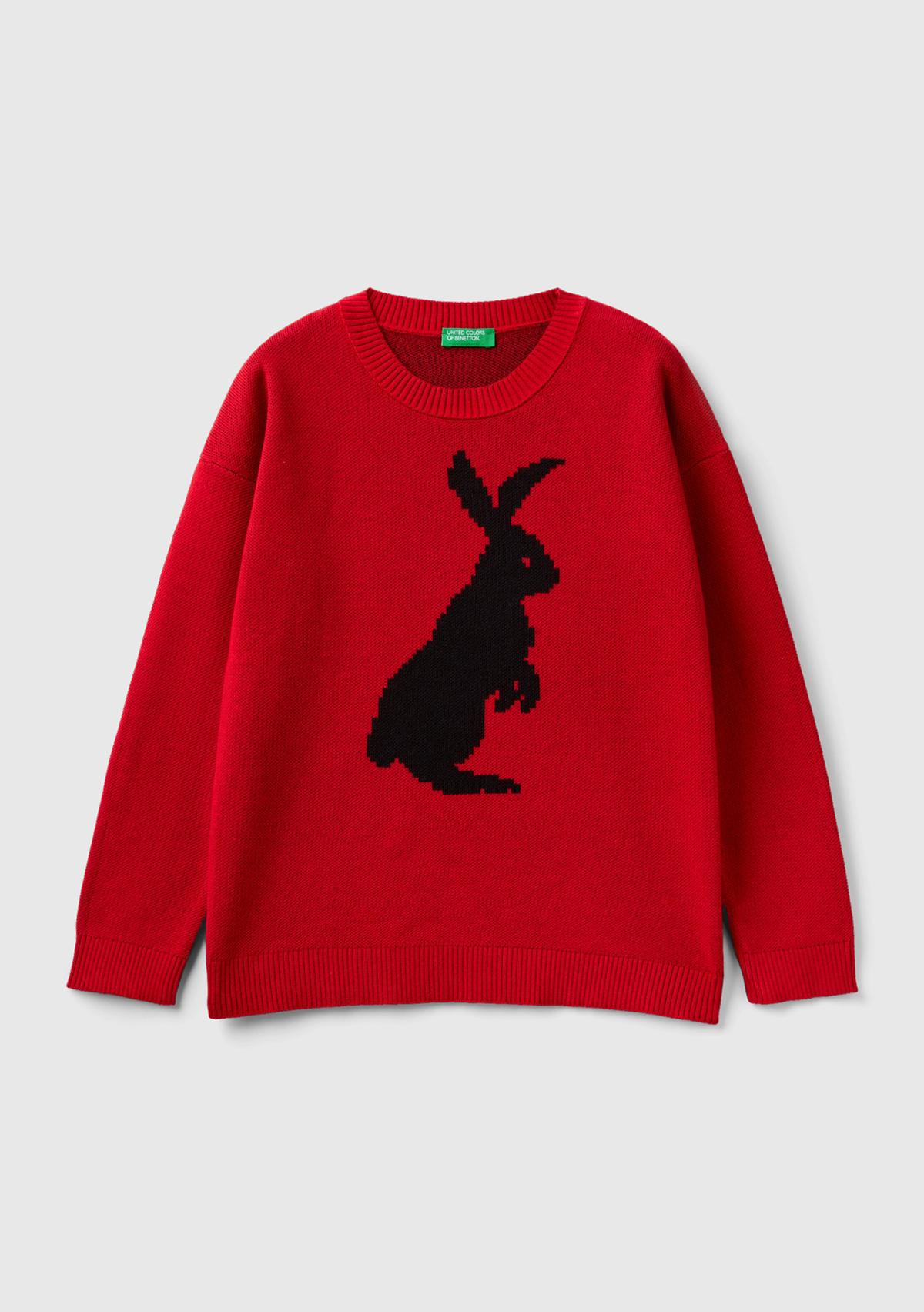 Erkek Çocuk Koyu Kırmızı Tavşan Desenli Kazak