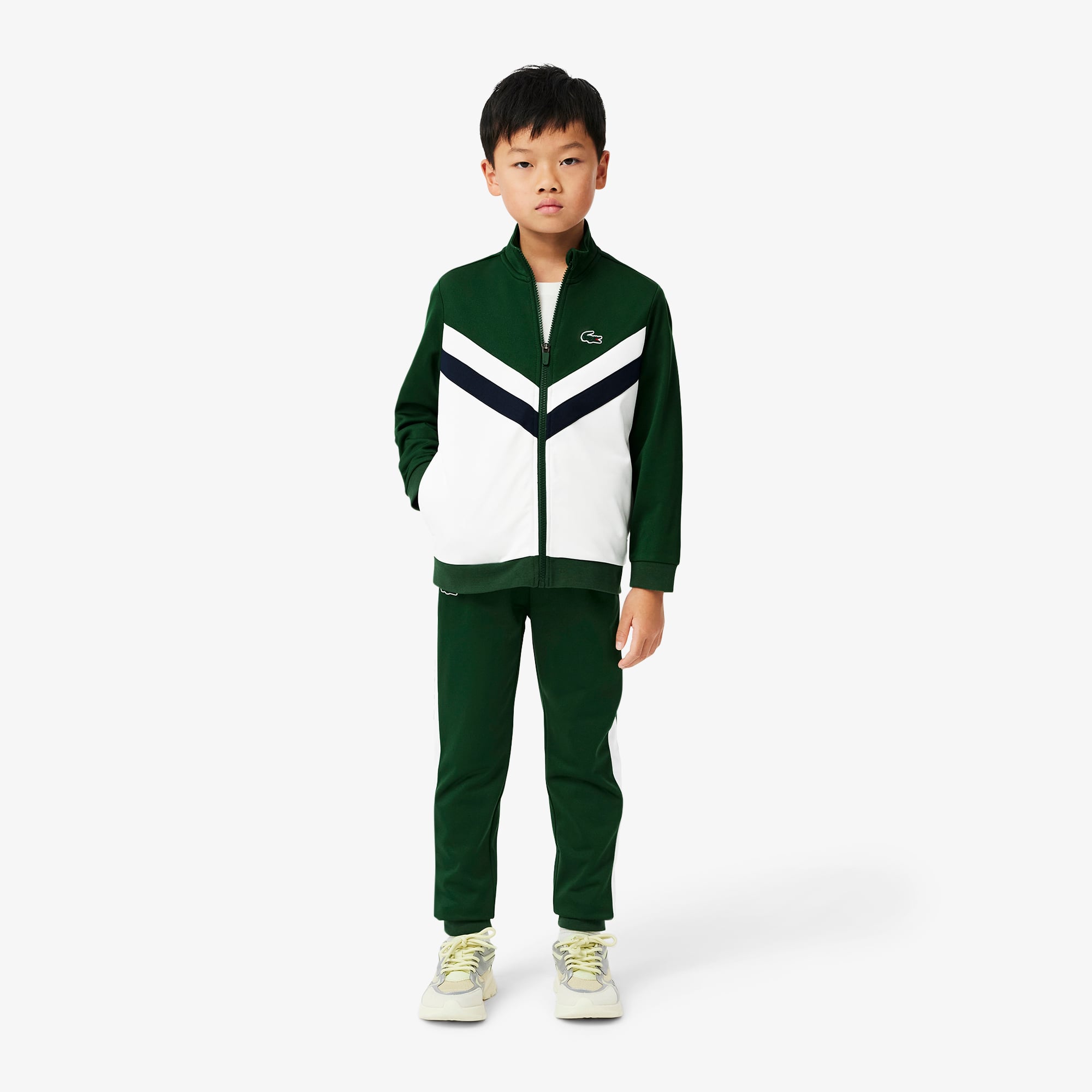 Hafif ve rahat yapısıyla genç timsahların vazgeçilmezleri arasında yer alacak Lacoste çocuk eşofman takımlarını keşfedin.