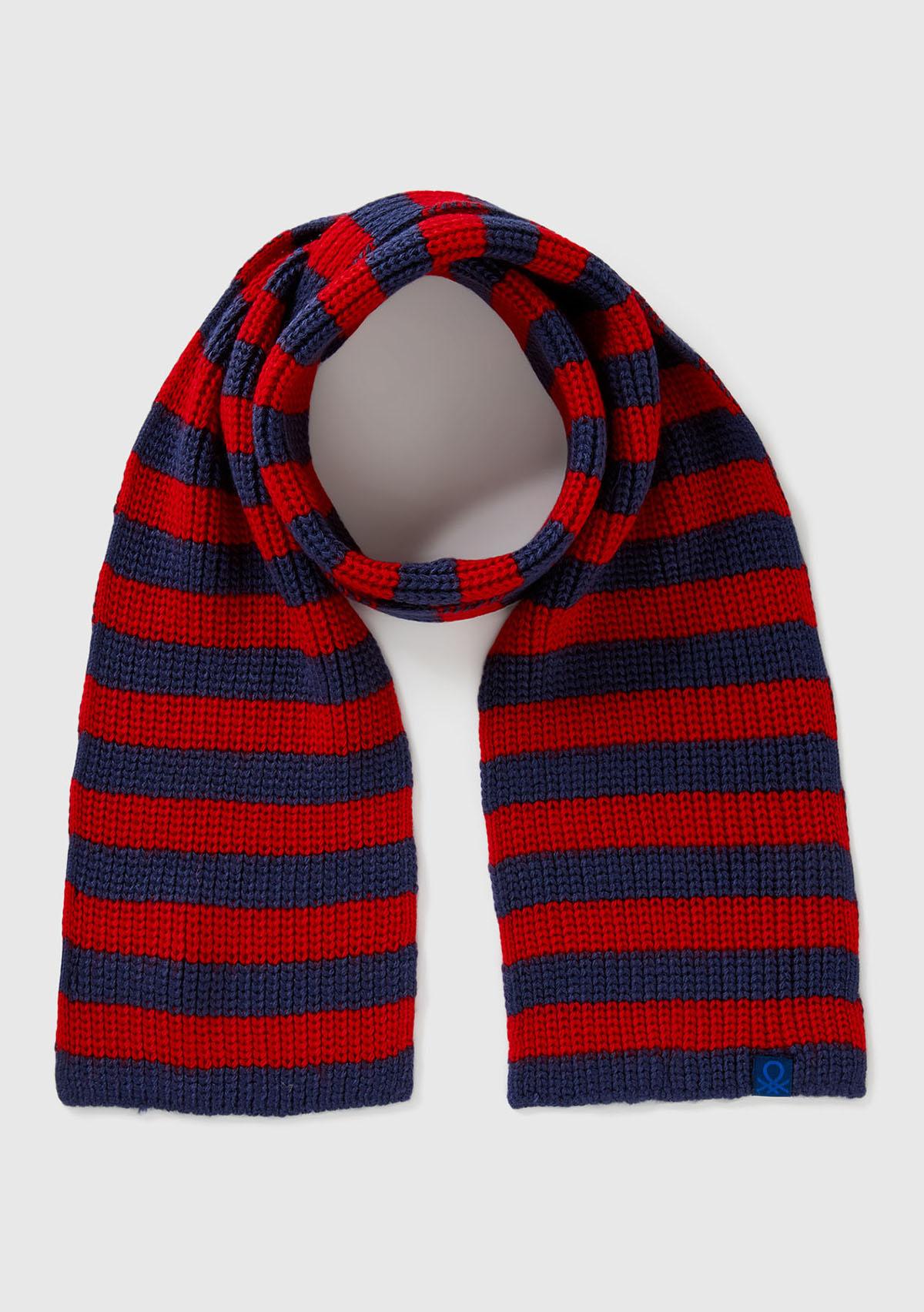Erkek Çocuk Lacivert %100 Akrilik Logo Etiketi Detaylı Renk Bloklu Atkı