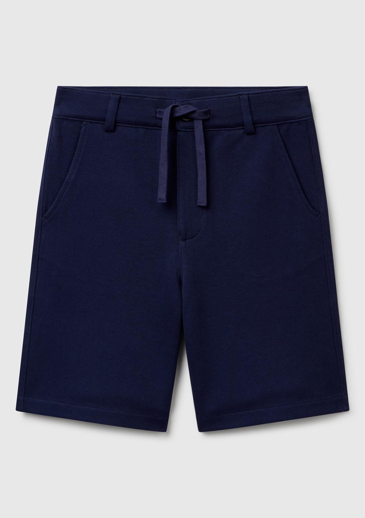 Erkek Çocuk Lacivert Büzgü İpli Düğmeli Arka Cebi Biyeli Bermuda Şort