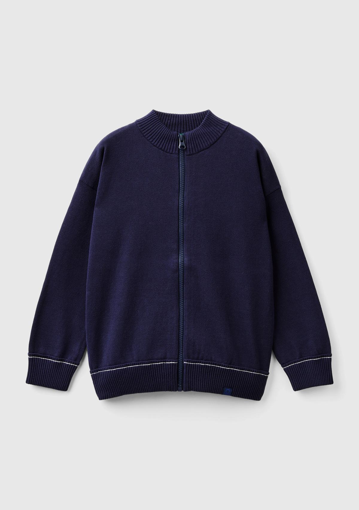Erkek Çocuk Lacivert Etek Ucu Logo Detaylı Fermuarlı Dik Yaka Hırka