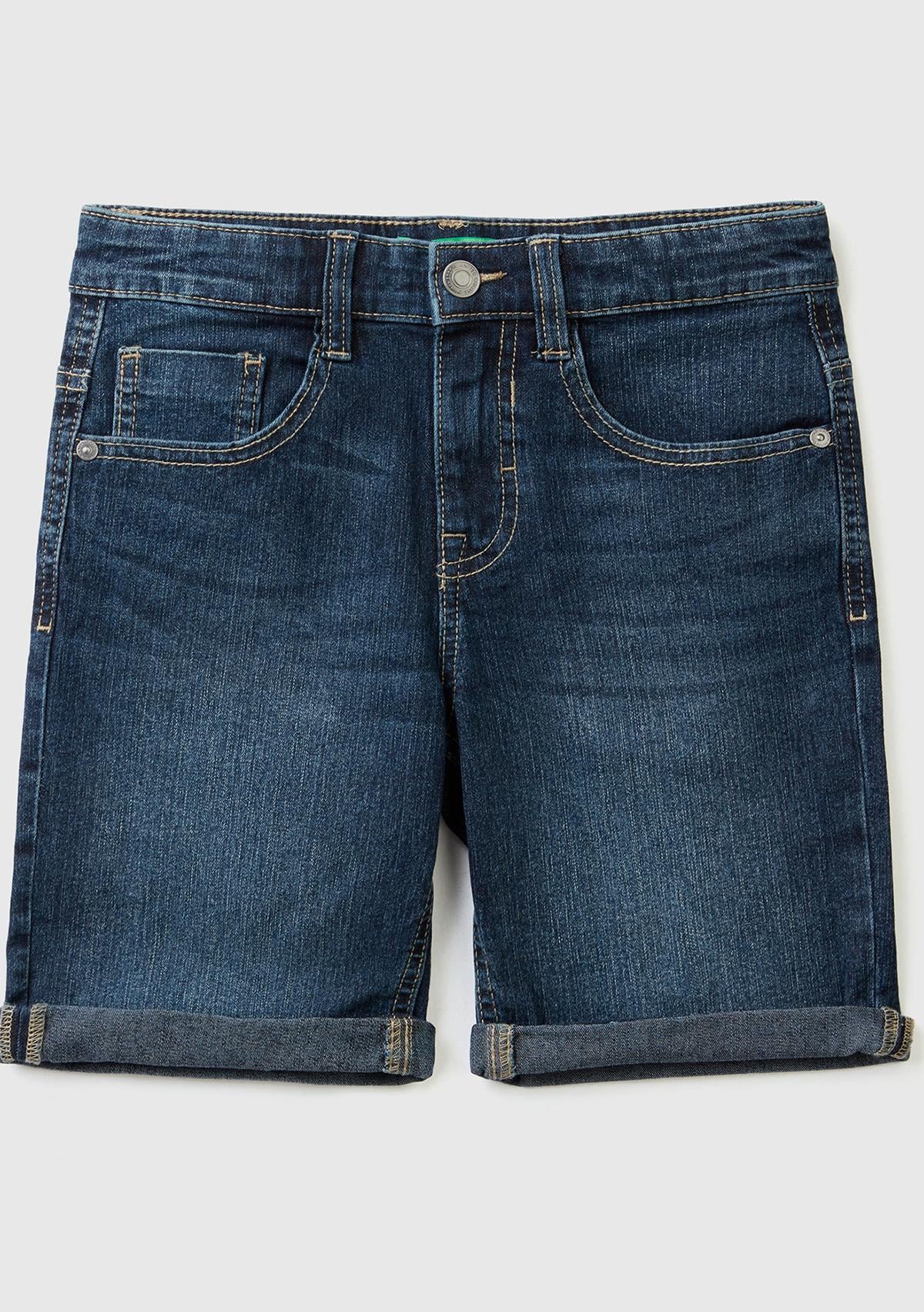 Arkası logo işlemeli, beş cepli, kemer delikli, dar kesim, kısa paça erkek çocuk denim bermuda şort. Çevresel etkiyi azaltmak amacıyla üretiminin her aşamasında Eco-Recycle geri dönüştürülmüş pamuk liflerinden elde edilmiş denim kumaş kullanılmıştır. Rahatlığına önem veren erkek çocukları için ideal bir stil...