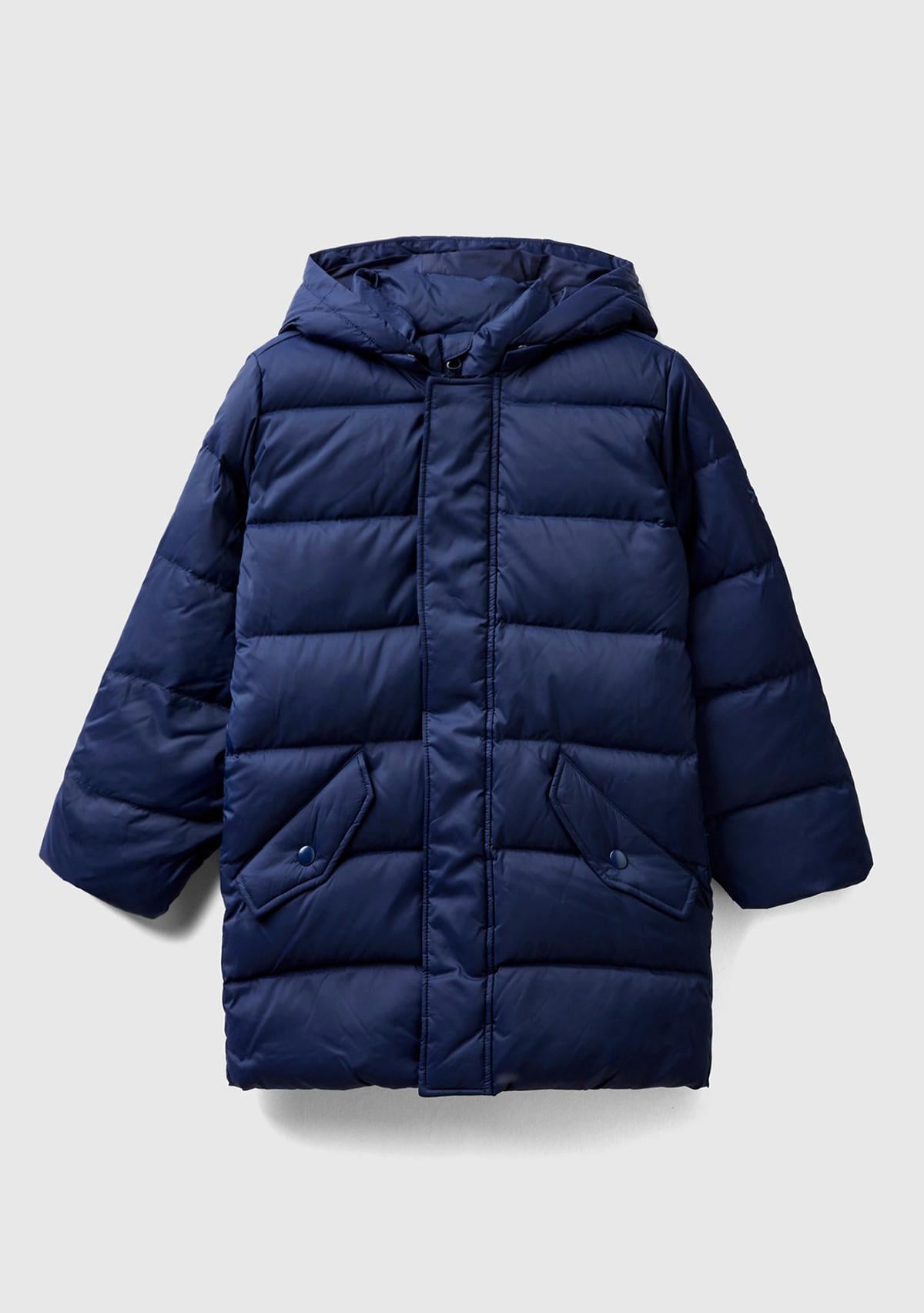 Erkek Çocuk Lacivert Logo İşlemeli Kaztüyü Uzun Mont. Kaz Tüyü İçerir