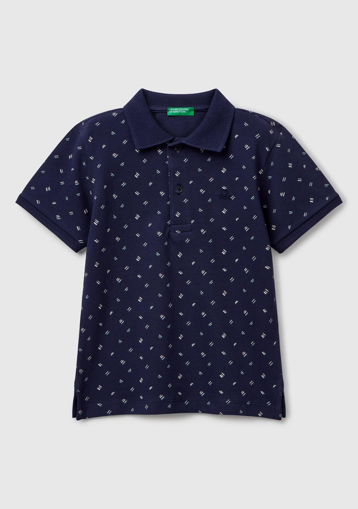 Erkek Çocuk Lacivert Puantiye Desenli Logo Detaylı Polo T-Shirt