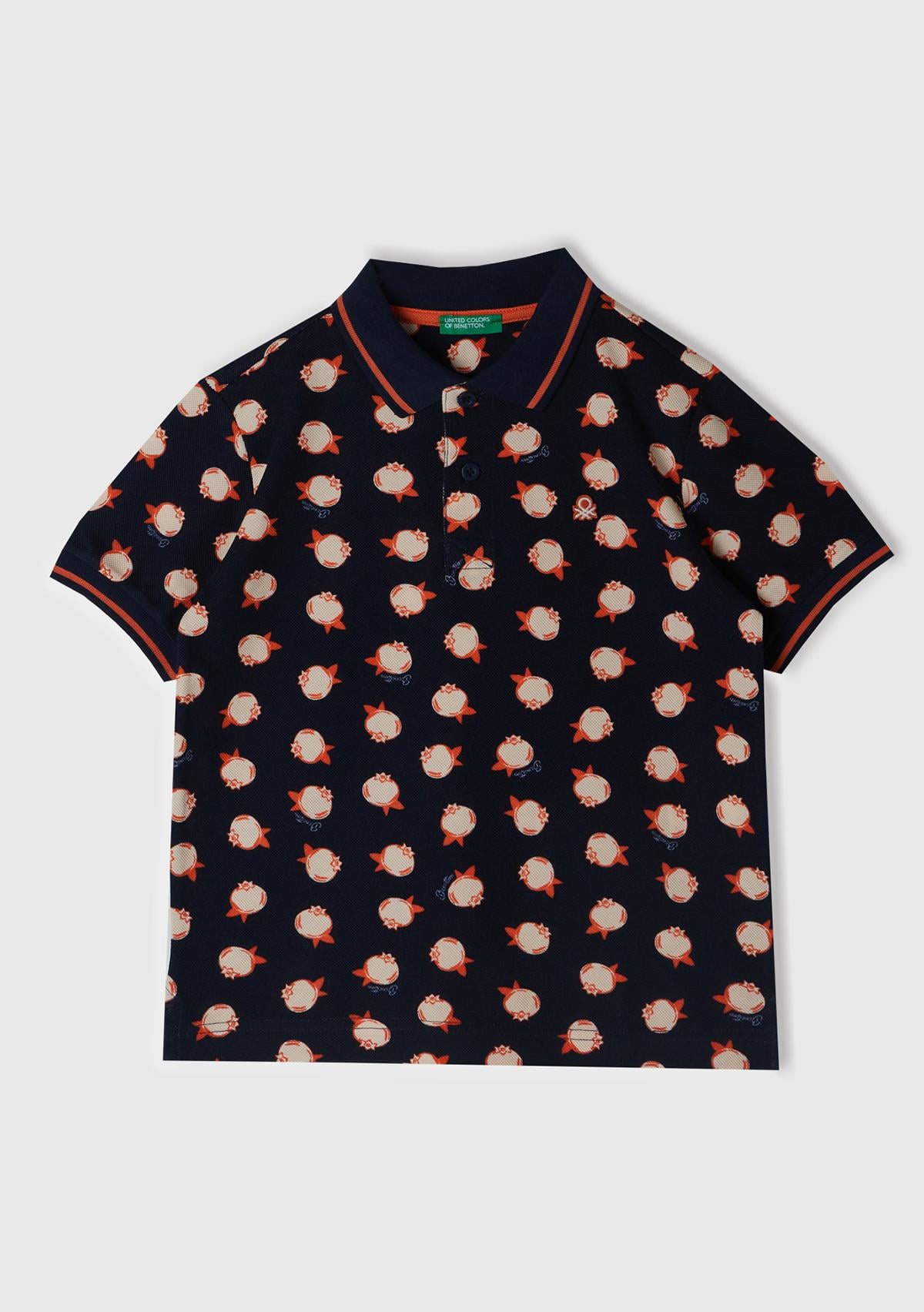 Erkek Çocuk Lacivert Sol Göğsü Logo Baskılı Tamamı Desenli Polo T-Shirt